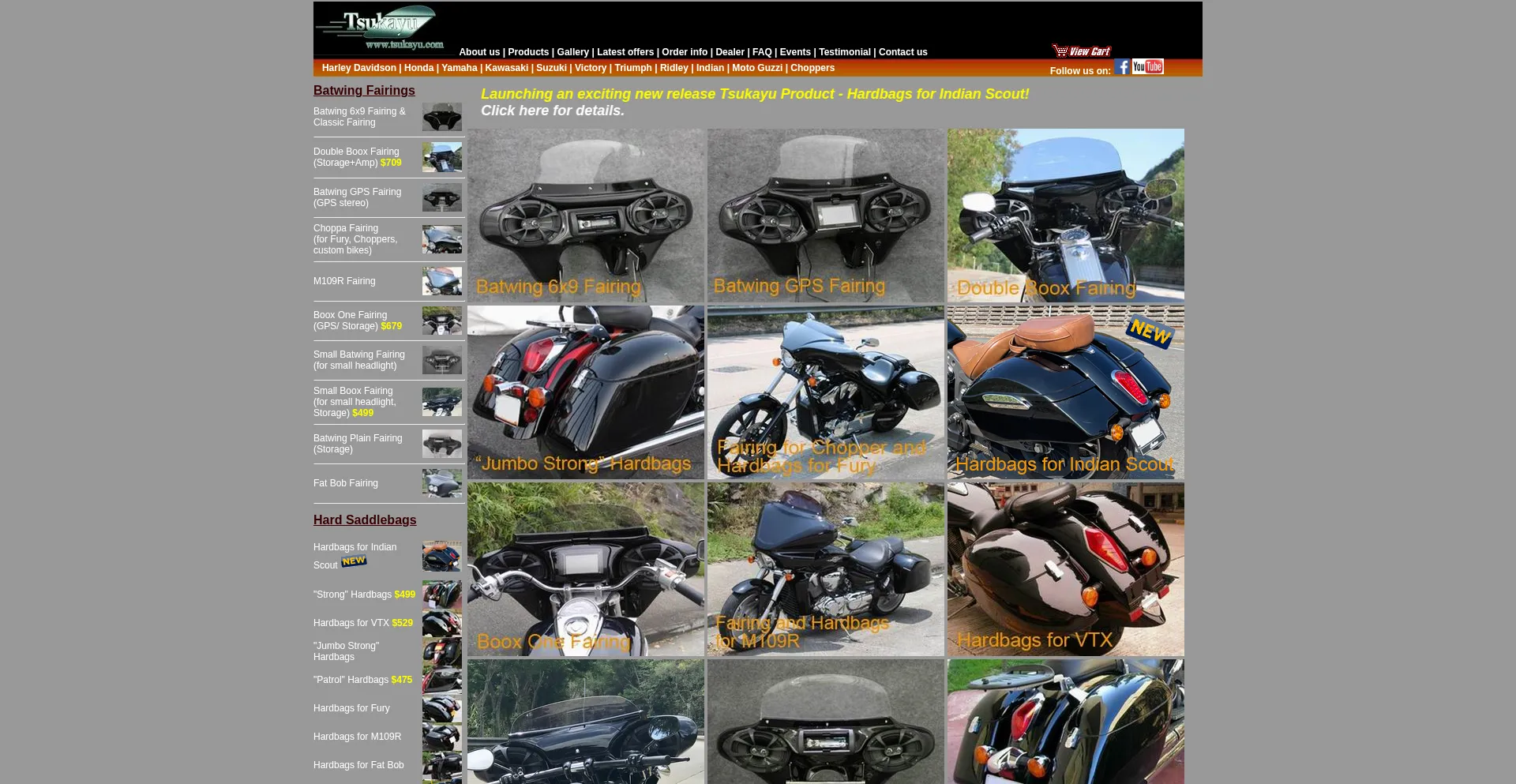 Tsukayu Fairing, Hard Saddlebags and Touring Trunk for Harley Davidson, HONDA, YAMAHA, SUZUKI, KAWASAKI, VICTORY