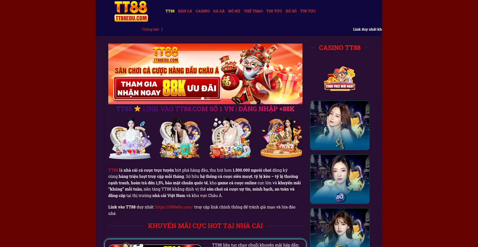 TT88 là nhà cái cá cược trực tuyến bứt phá hàng đầu, thu hút hơn 1.500.000 người chơi đăng ký cùng hàng triệu lượt truy cập mỗi tháng...