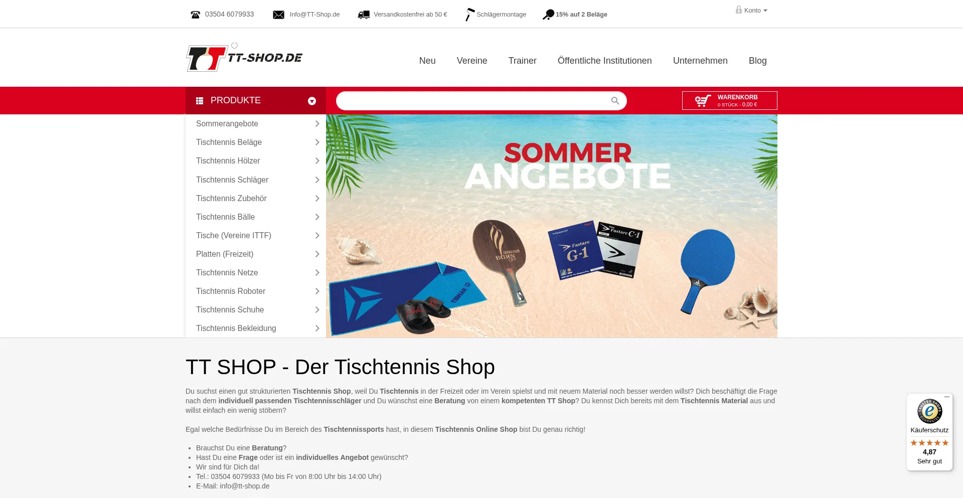 TT Shop – Der Tischtennis Shop