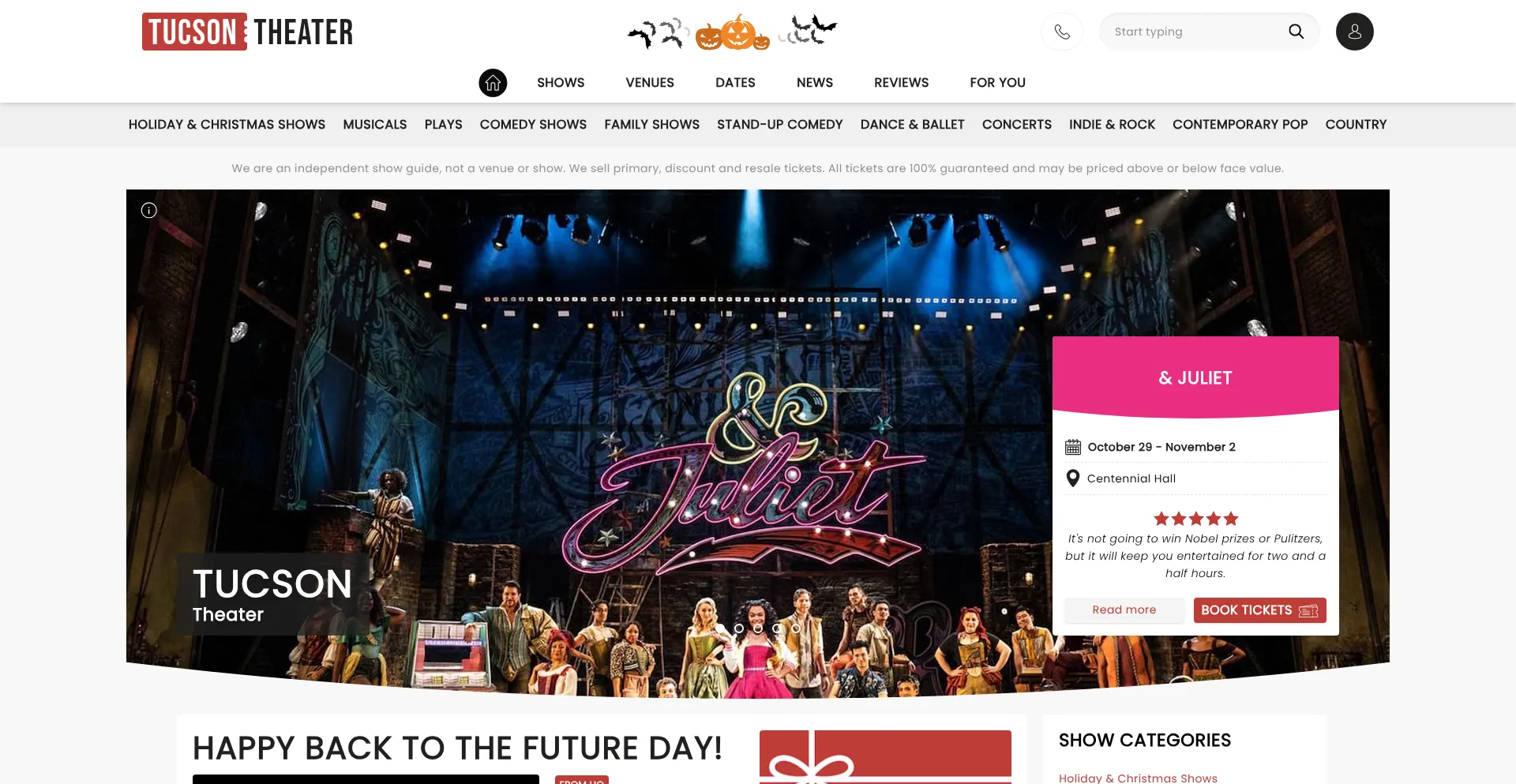 Tucson Theater is your guide to shows in Tucson AZ's theaters. Find Broadway Shows, Musicals, Plays, Stand-Up Comedy and Concerts and buy tickets with us now.