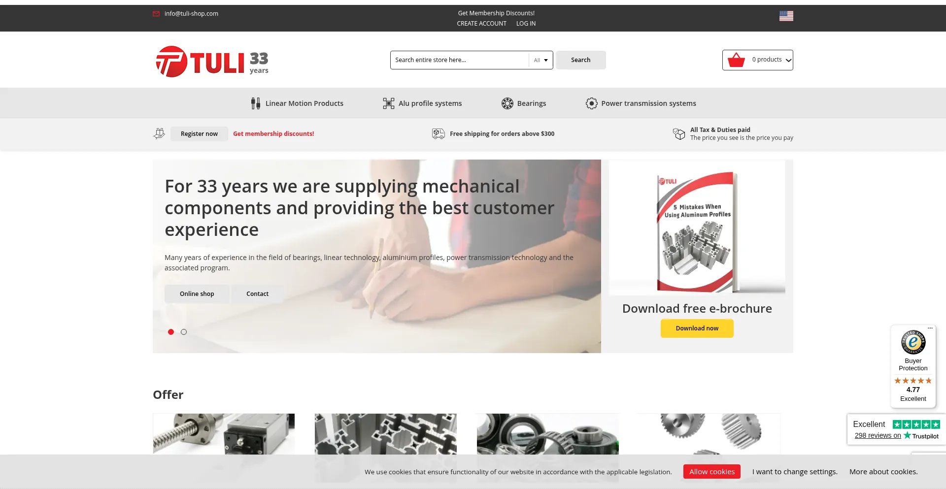 Shopping Reliable Payment Method Registration Form Trustpilot Rating Cookie Consent Bootstrap Framework Google Tag Manager Cloudflare Browser Insights Facebook Integration Social Media Links Animate.css Framework Good Trustpilot Score Long Term Domain Established Domain High Trust Score