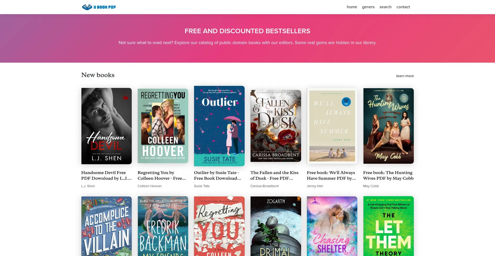 Free PDF and ePub books await you at ubookpdf. Dive into a treasure trove of literary classics and modern gems, all downloadable for free. Explore our vast collection today and ...