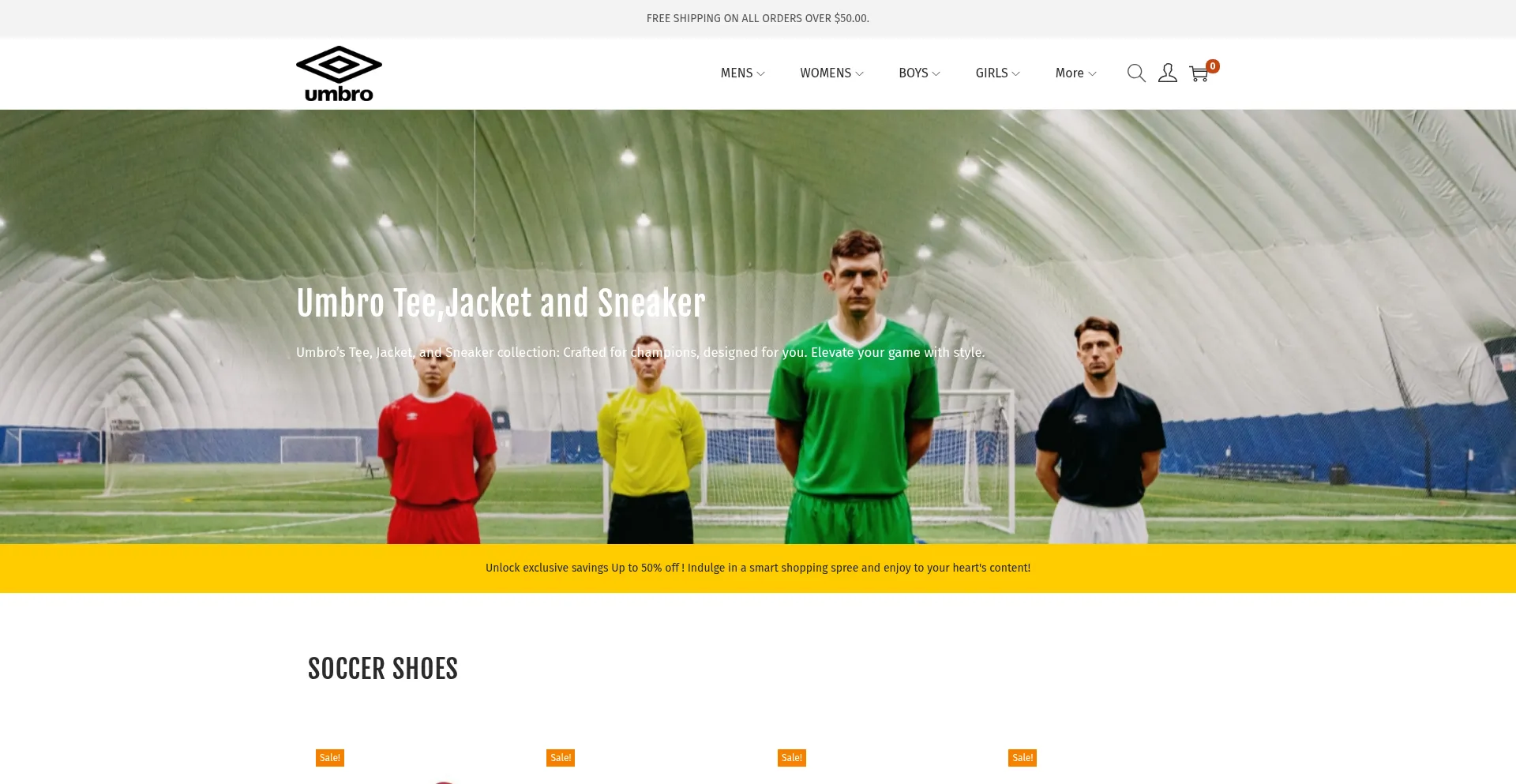 Umbro Tee,Jacket and Sneaker Umbro's Tee, Jacket, and Sneaker collection: Crafted for champions, designed for you. Elevate your game with style. Unlock exclusive savings Up to 5...