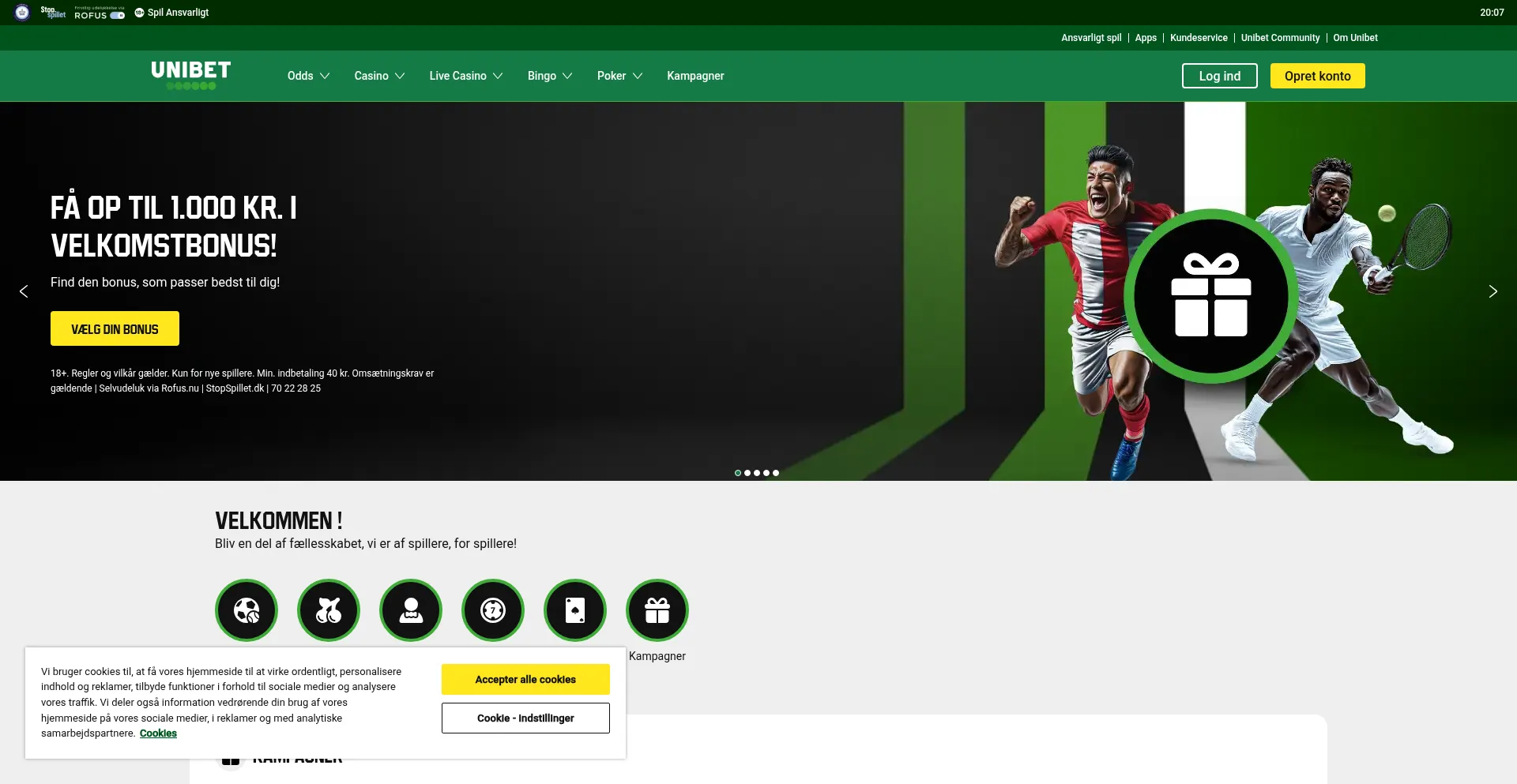 Opret dig hos Unibet i dag og få op til 1.000 kr. i velkomstbonus. Få de højeste odds, og nyd casino, live casino, poker og meget mere.