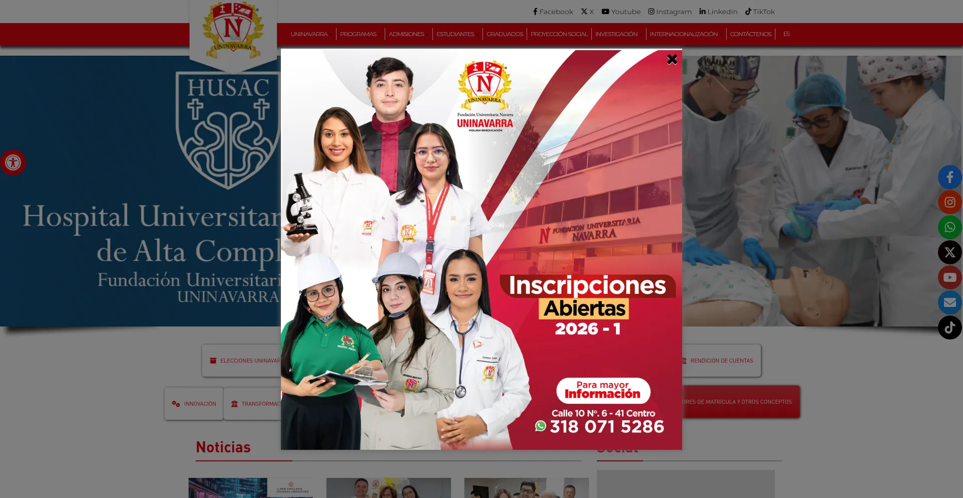 La presencia de enlaces de redes sociales en el sitio web indica que uninavarra.edu.co mantiene cuentas oficiales en redes sociales, lo que es un indicador positivo de credibilidad y compromiso.