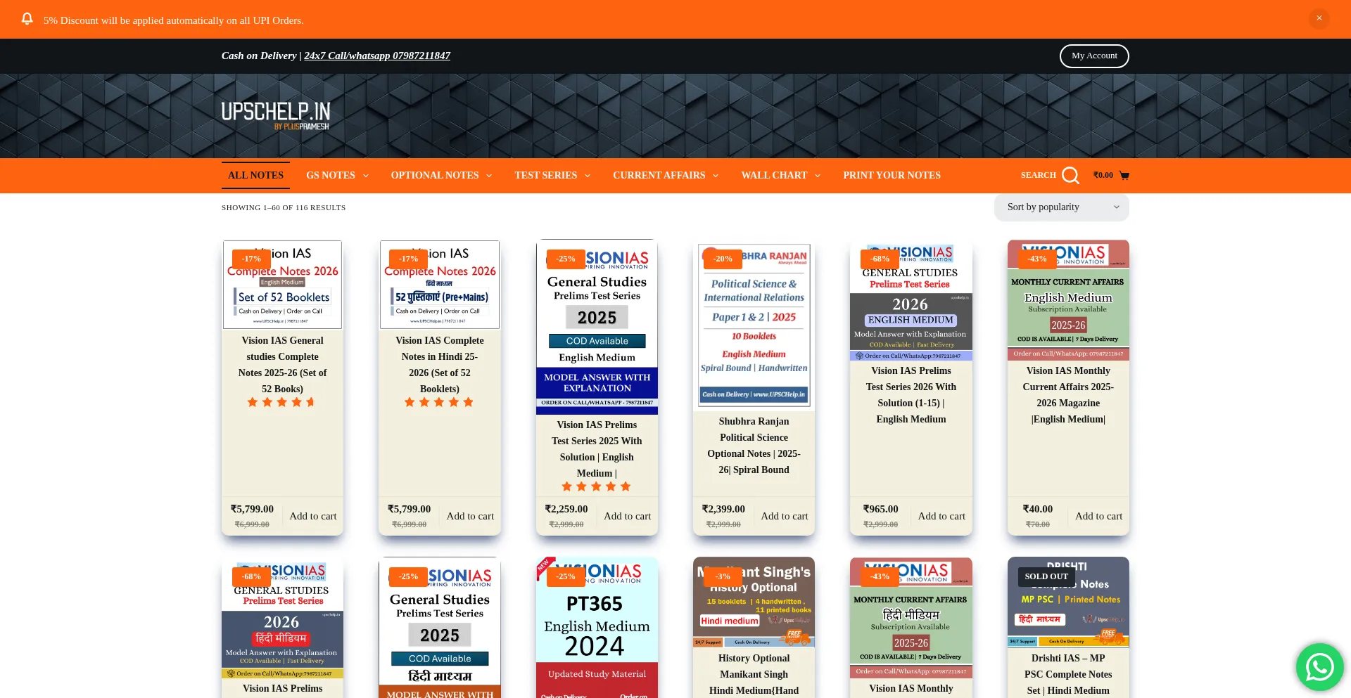 5% Discount will be applied automatically on all UPI Orders.