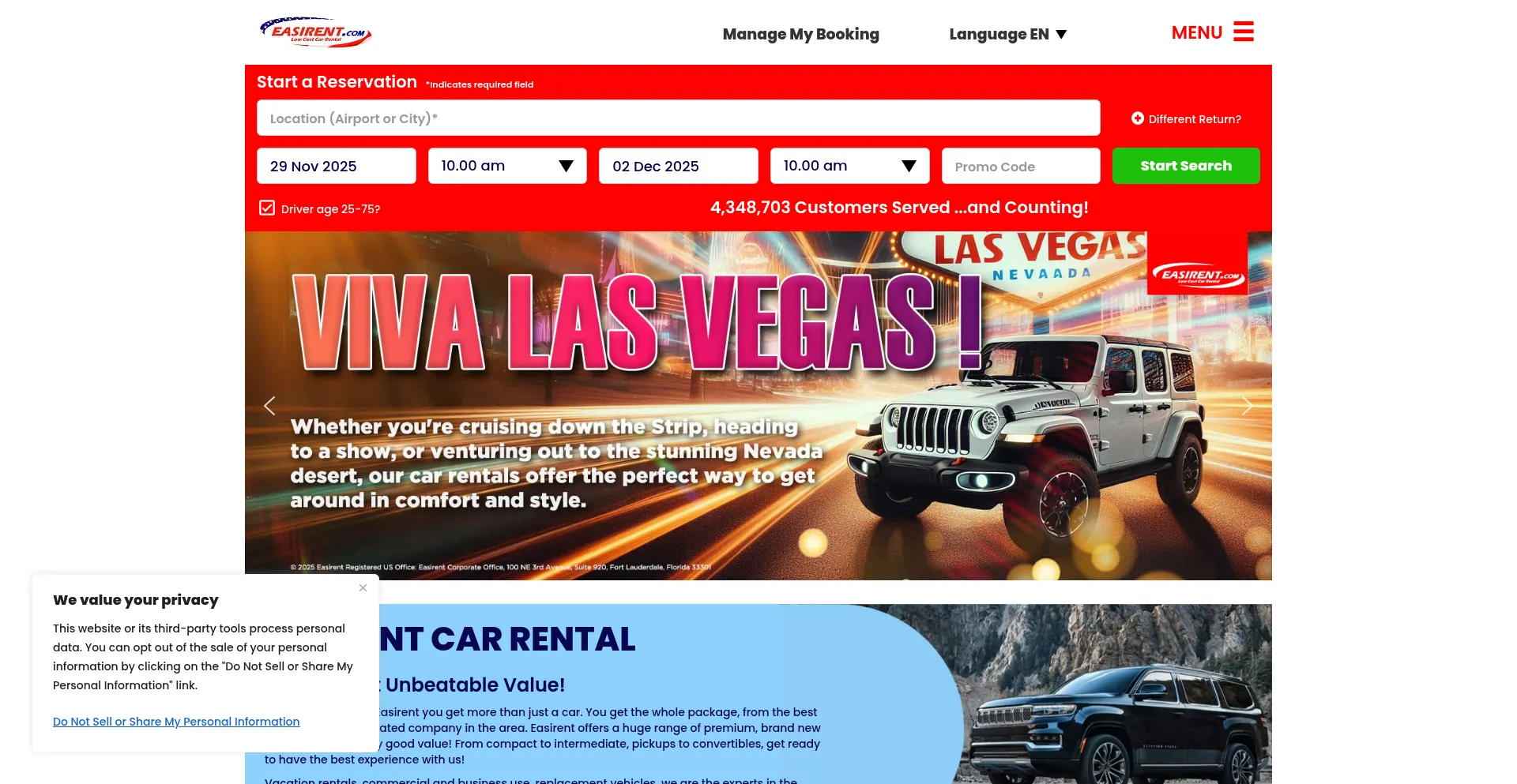 Car Rental with Easirent - the low cost rent a car company. Book direct online for our lowest prices! Official Easirent website.