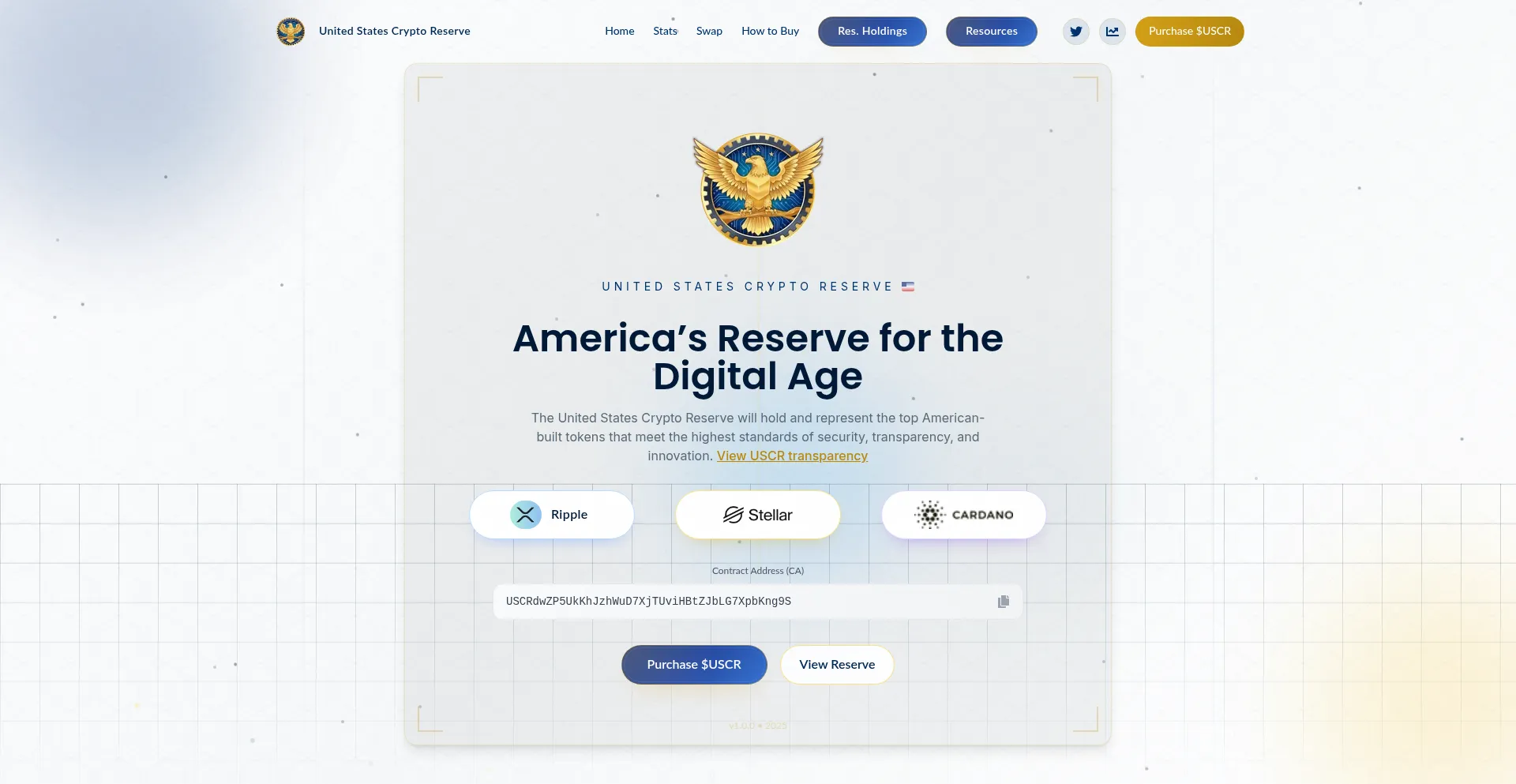 United States Crypto Reserve (USCR) is America's official digital-asset reserve initiative - your source for verified data, mission updates, and on-chain transparency into the U...