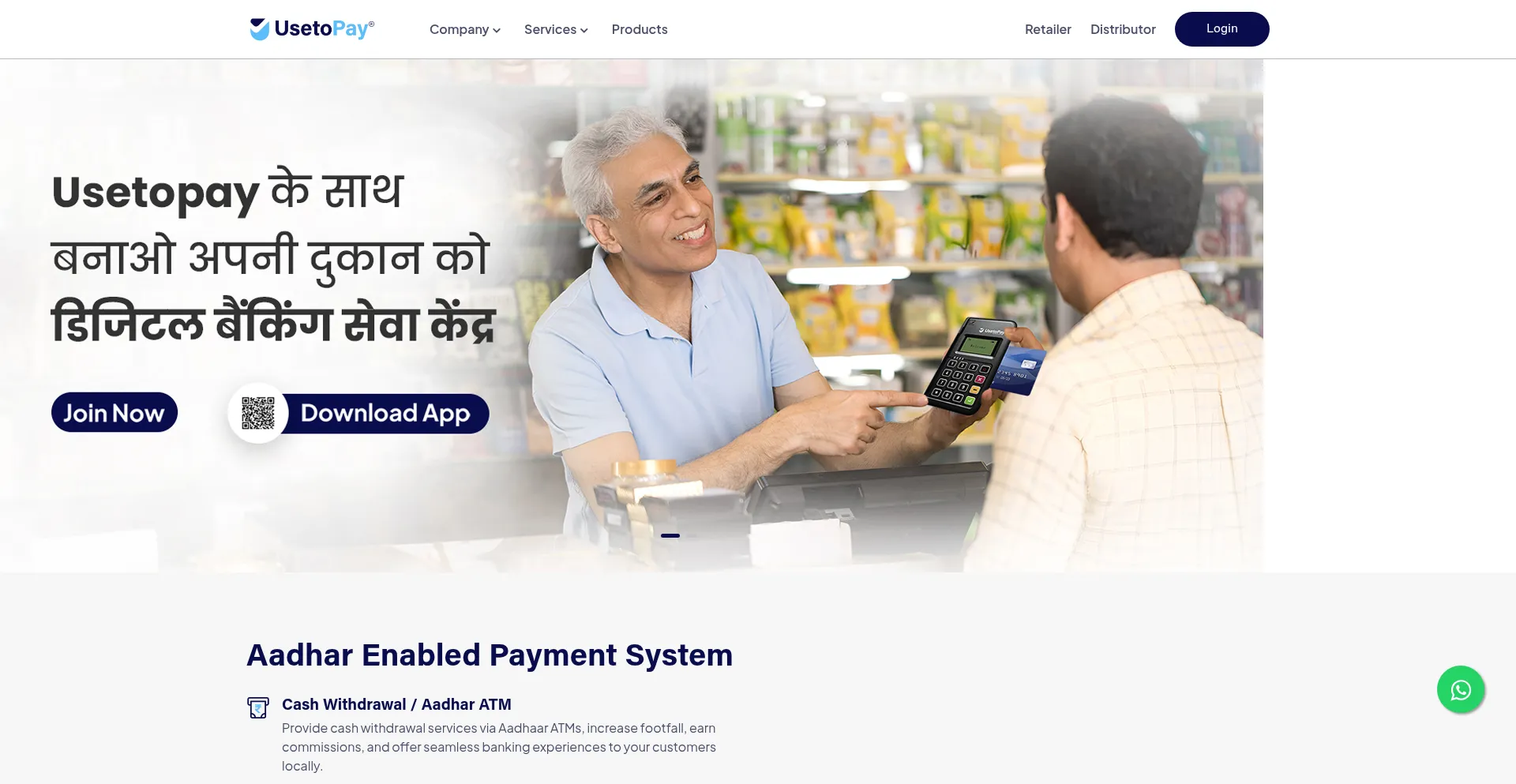 Usetopay digital financial services provider offering AEPS, Micro ATMs, Bill Payments, Money Transfer, and more