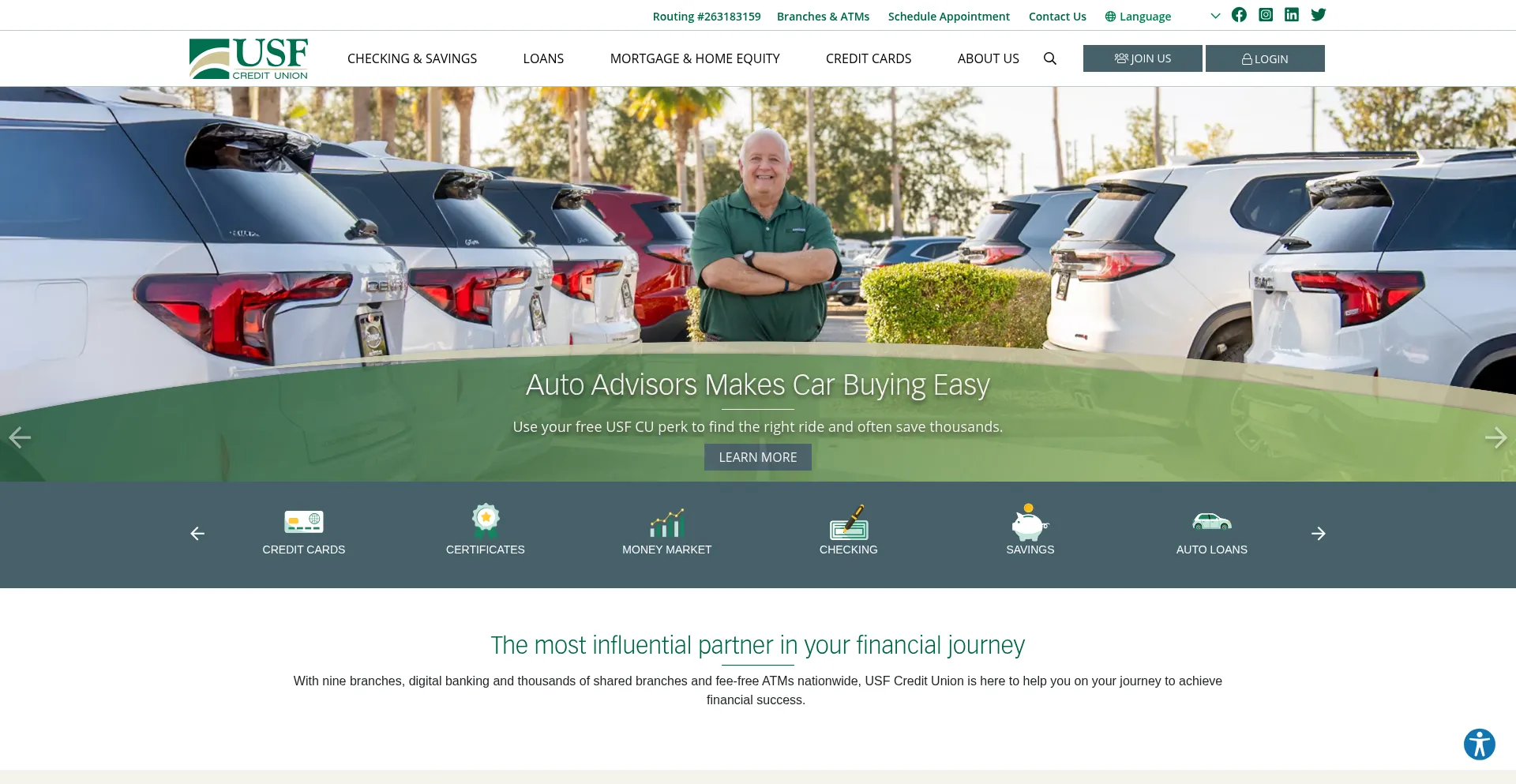 px.ads.linkedin.com maxcdn.bootstrapcdn.com stats.g.doubleclick.net use.typekit.net www.googletagmanager.com www.gstatic.com wsv3cdn.audioeye.com usffcu.com www.instagram.com wt.dm00.com +23 más
