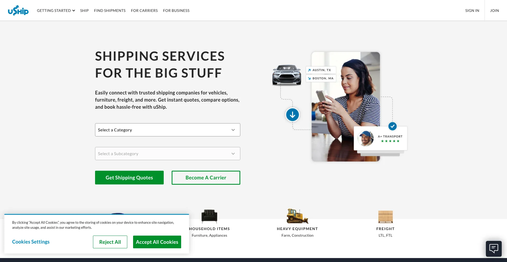 uShip makes shipping motorcycles, boats, and other large items fast and affordable by connecting you to our network of carriers who compete for your shipment.