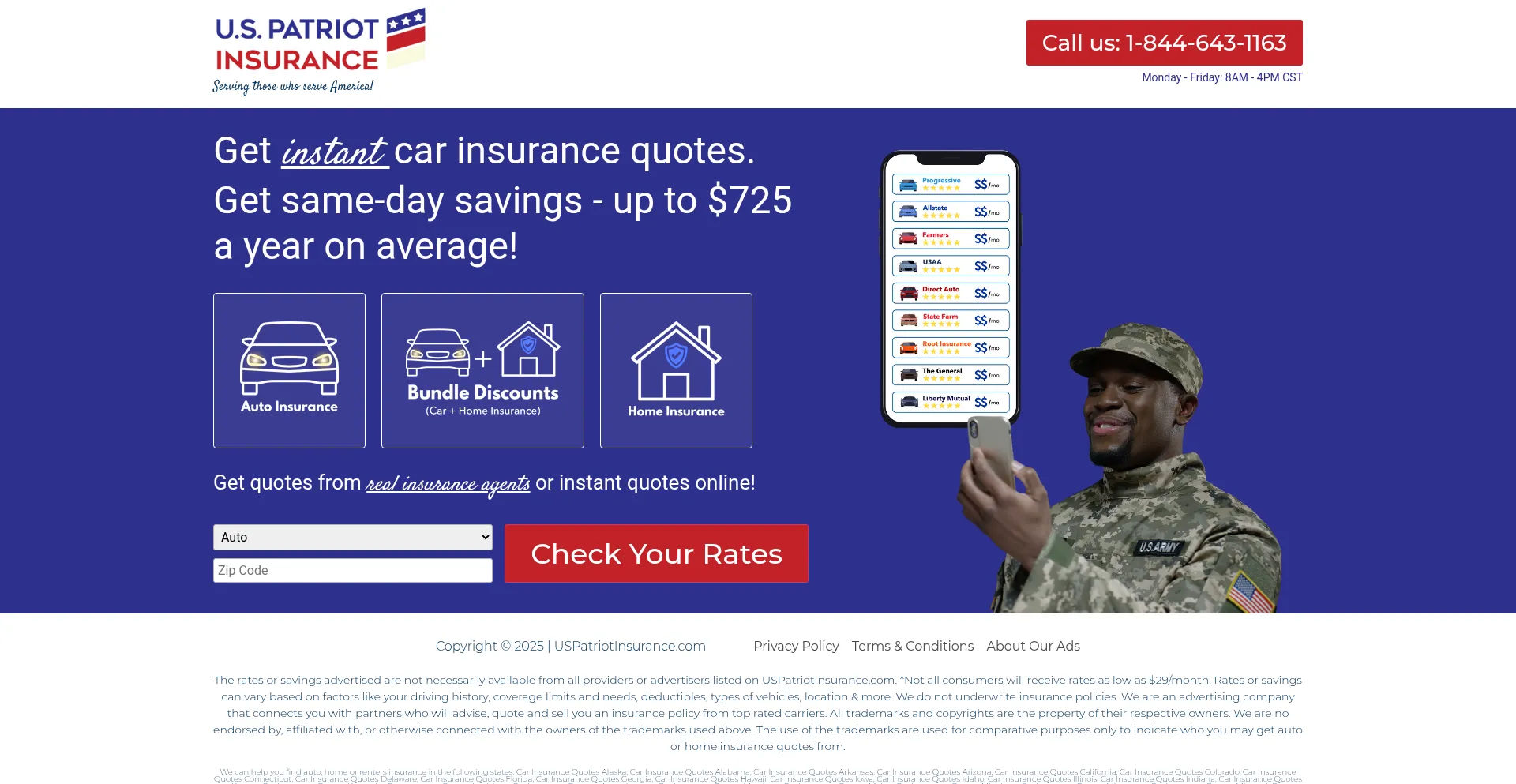 Get instant car insurance quotes for the Military community. Save 15% or more on your current rate! Call or quote online!