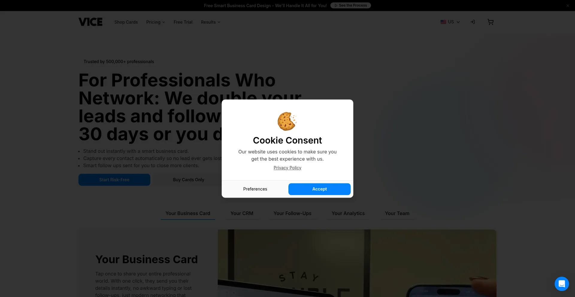Turn meetings into clients with V1CE. Share your details fast, capture every lead, and follow up automatically. Thirty day free trial with lifetime replacements.