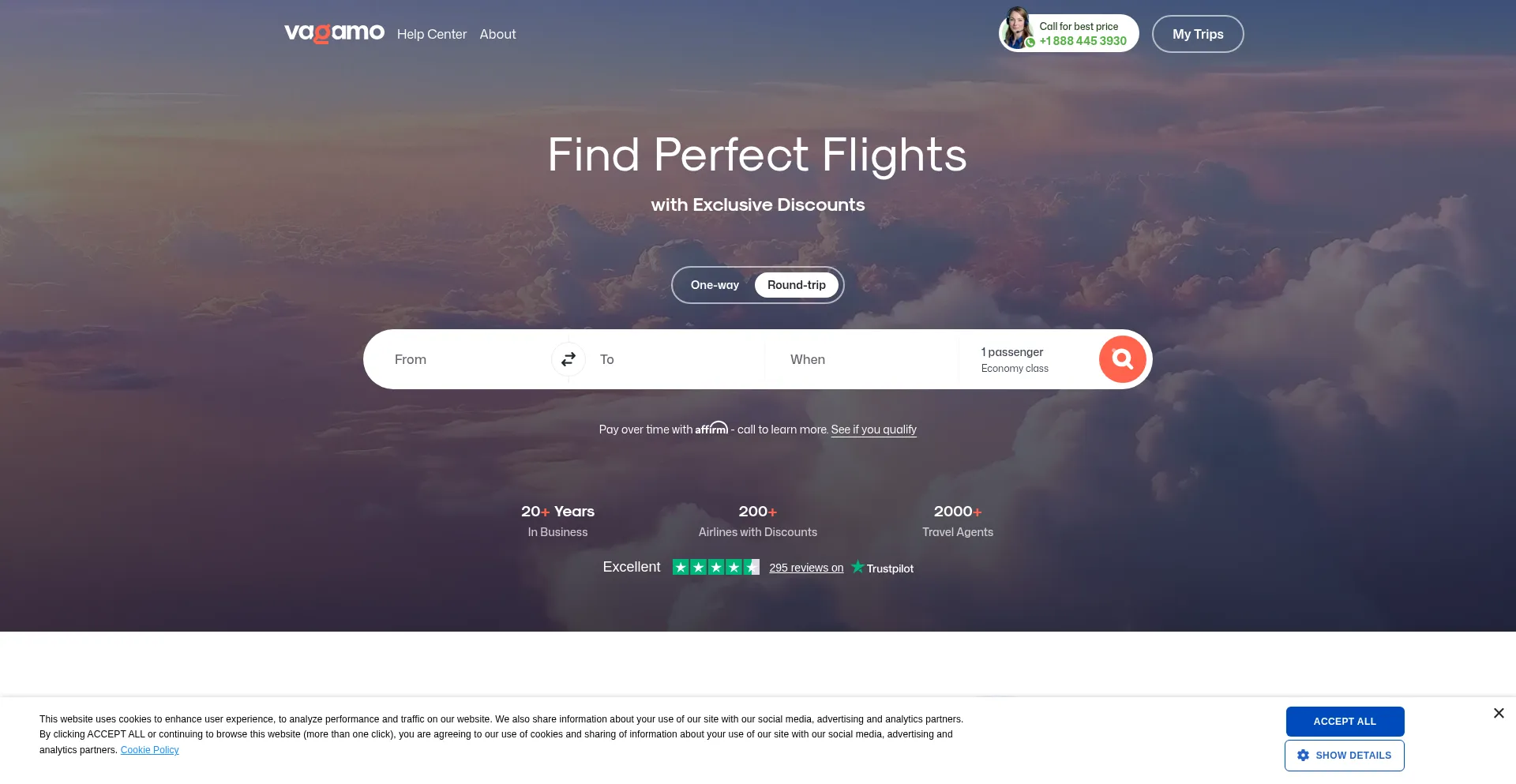 Find and book the best flight deals with Vagamo. Compare exclusive airfares, secure low-cost tickets, and enjoy hassle-free booking with expert travel support