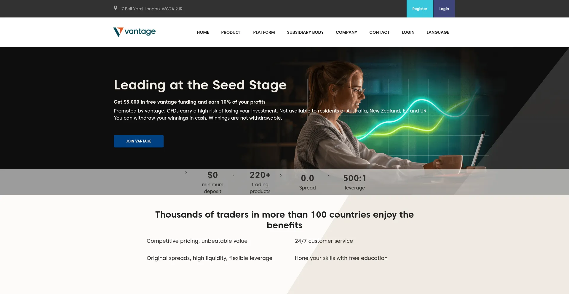 Vantagefxtrade.com Reseña del sitio web