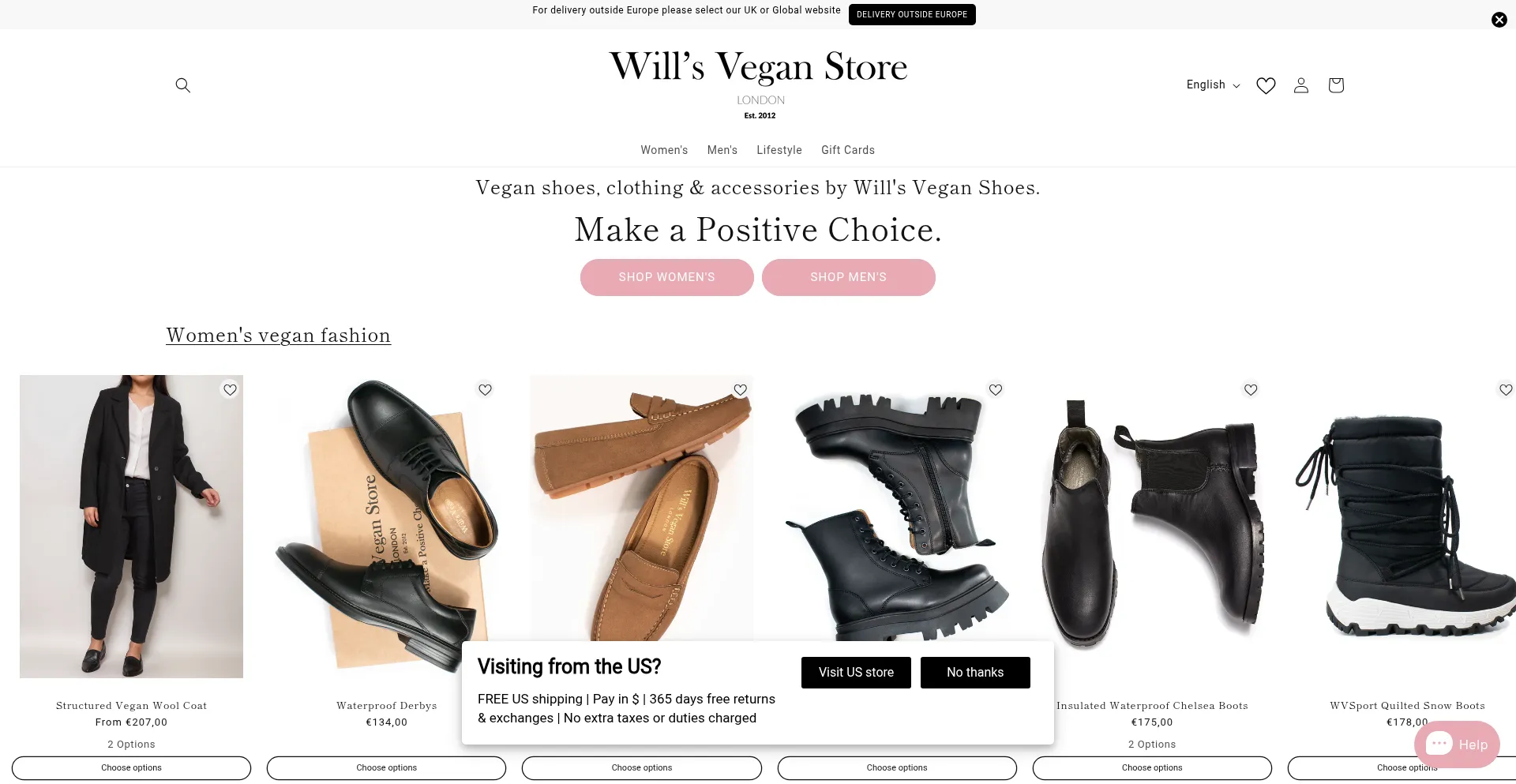 Vegan shoes, boots, clothing & accessories ethically made in Europe since 2012. 365 days free returns & exchanges. Make a Positive Choice.