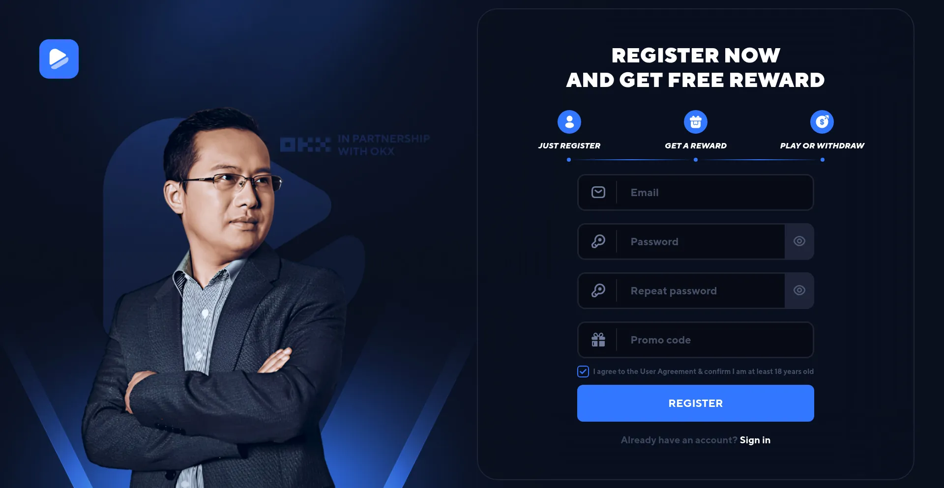 18+, Cryptocurrency, Games, Registration Form, Casino, Facebook Integration, Young Domain