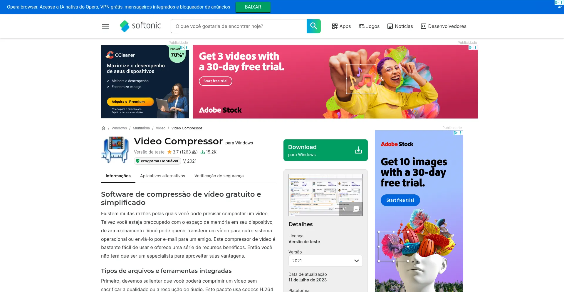 Video-compressor.softonic.com.br Reseña del sitio web