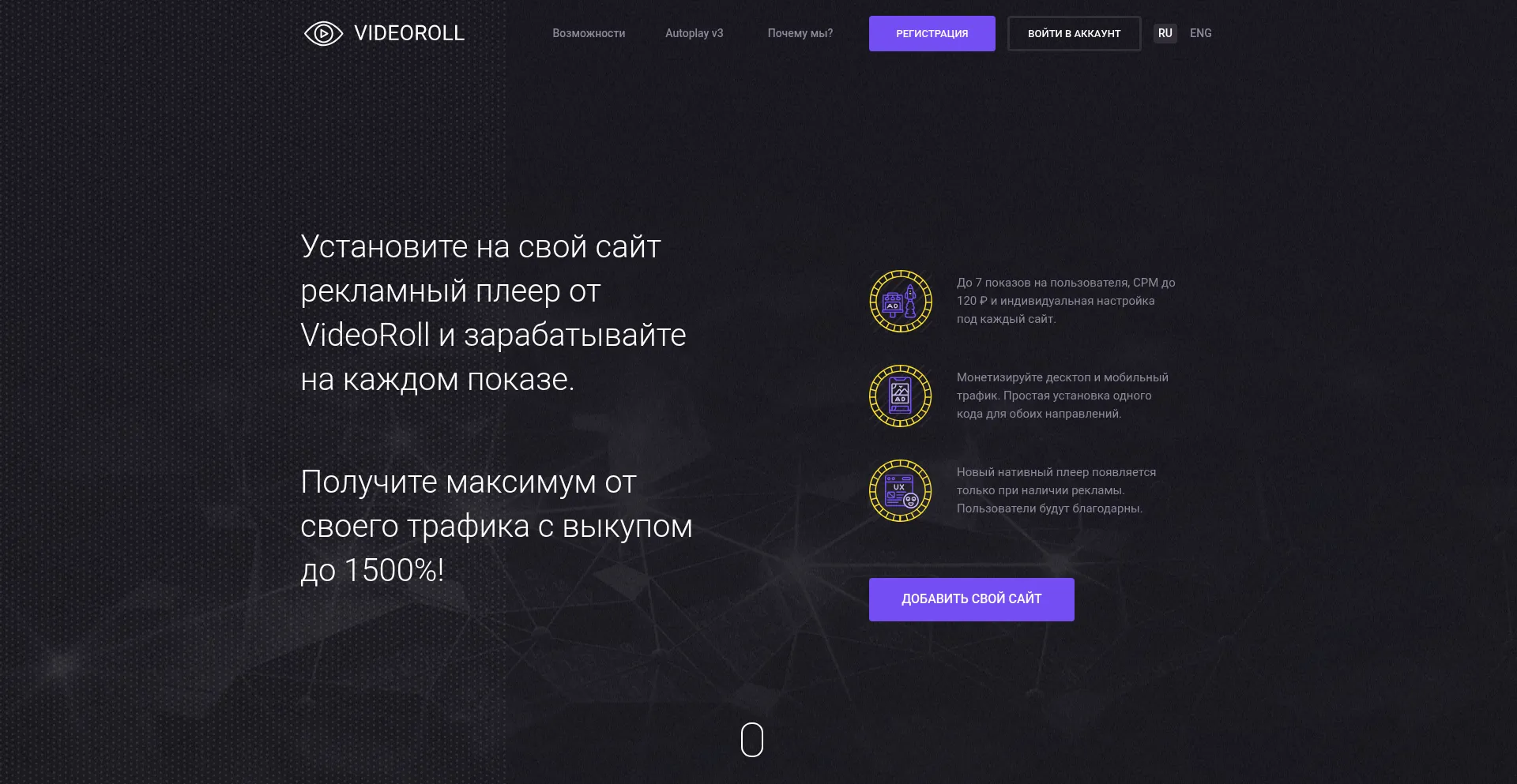 Рекламная сеть для вебмастеров. Монетизируем трафик легальной видеорекламой. Высокий CPM, выкуп м...