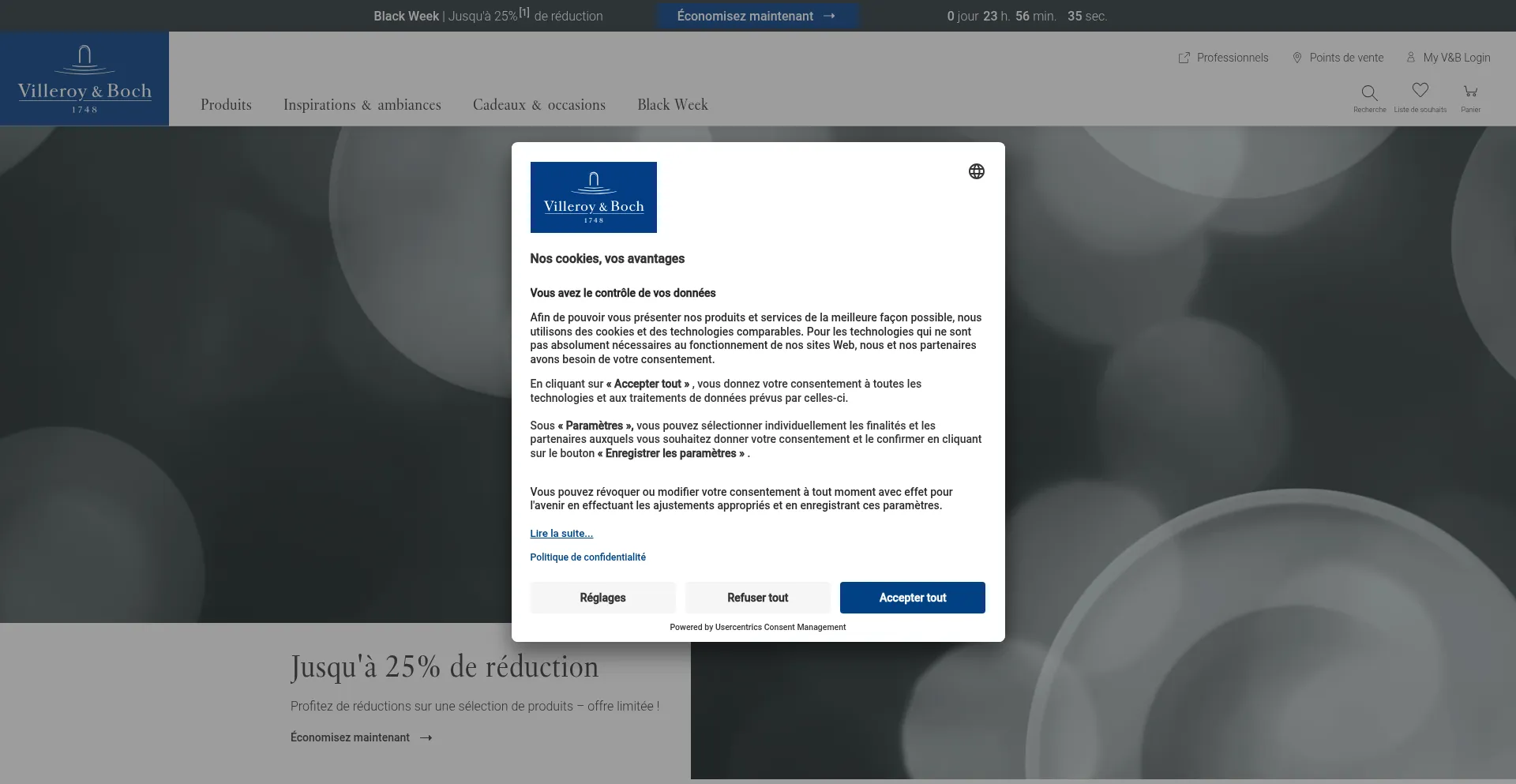 El sitio web implementa mecanismos de consentimiento de cookies en cumplimiento con regulaciones de privacidad como GDPR o CCPA. Esto demuestra que villeroy-boch.be adhiere a estándares de protección de datos y proporciona a los usuarios control sobre prácticas de recolección de datos personales.