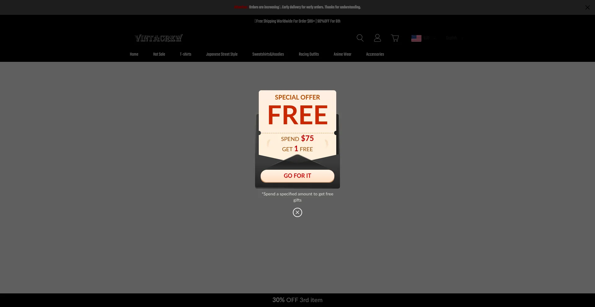 ¿Es Vintacrew.com una estafa o una tienda legítima? Muy baja confiabilidad 1/100