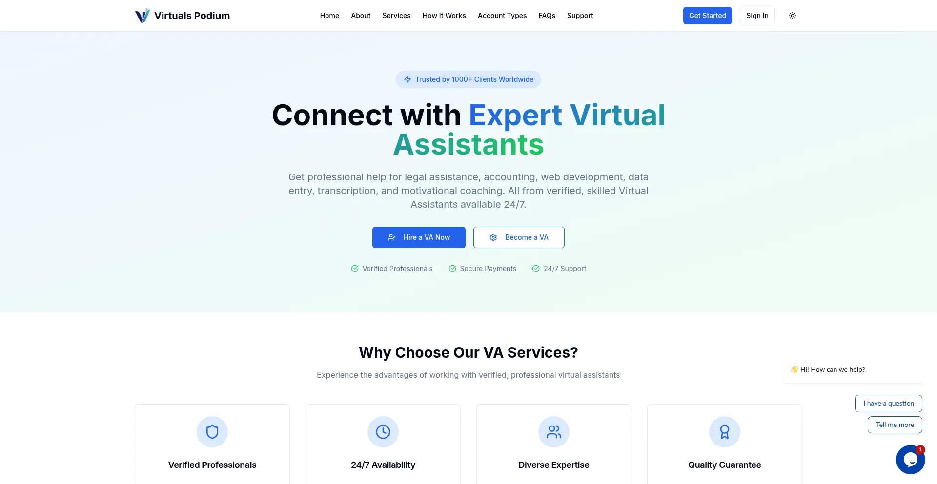 Hire verified Virtual Assistants for legal assistance, accounting, web development, data entry, transcription, and counseling. Professional remote VA services with NDA protection.