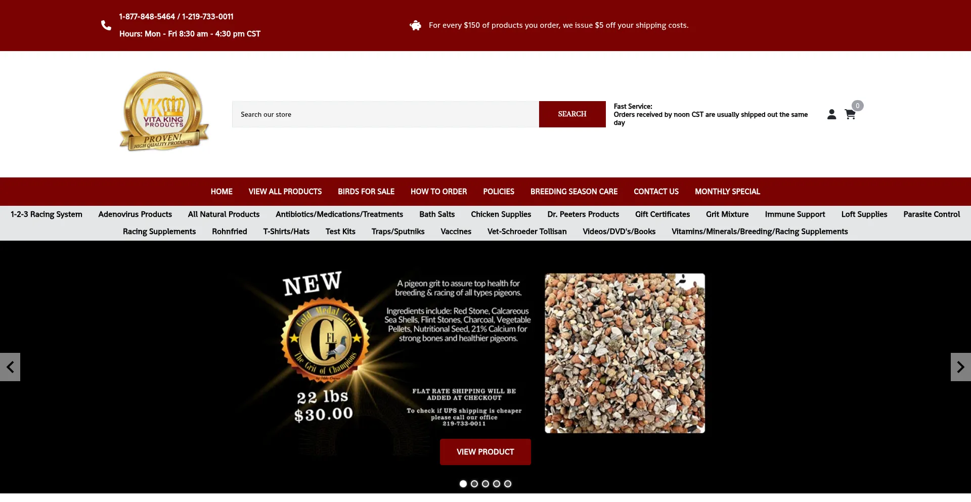Vita King Products provides products for racing pigeons, fancy pigeons, and show pigeons. We provide pigeon vitamins, pigeon minerals, mineral grit made by Jovati. We also provi...