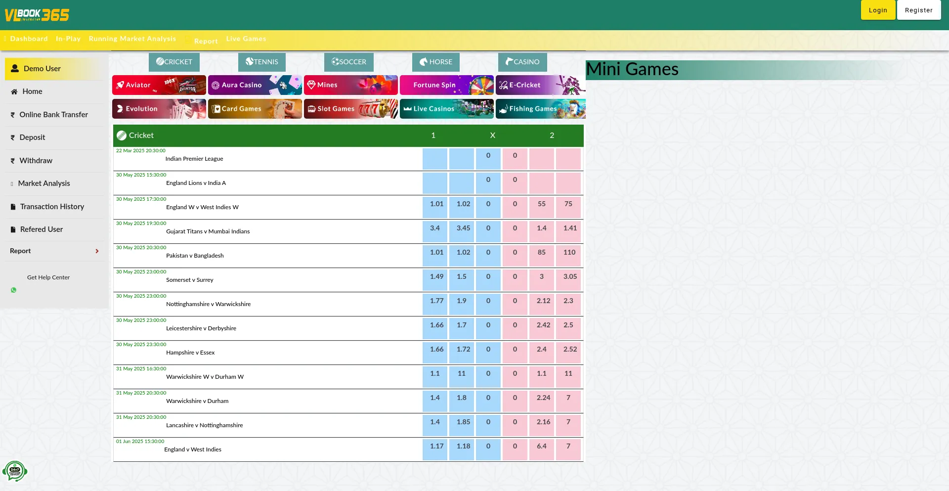 Vlbook365 India's First Legal and Fastest Sports exchange and Casino Platform