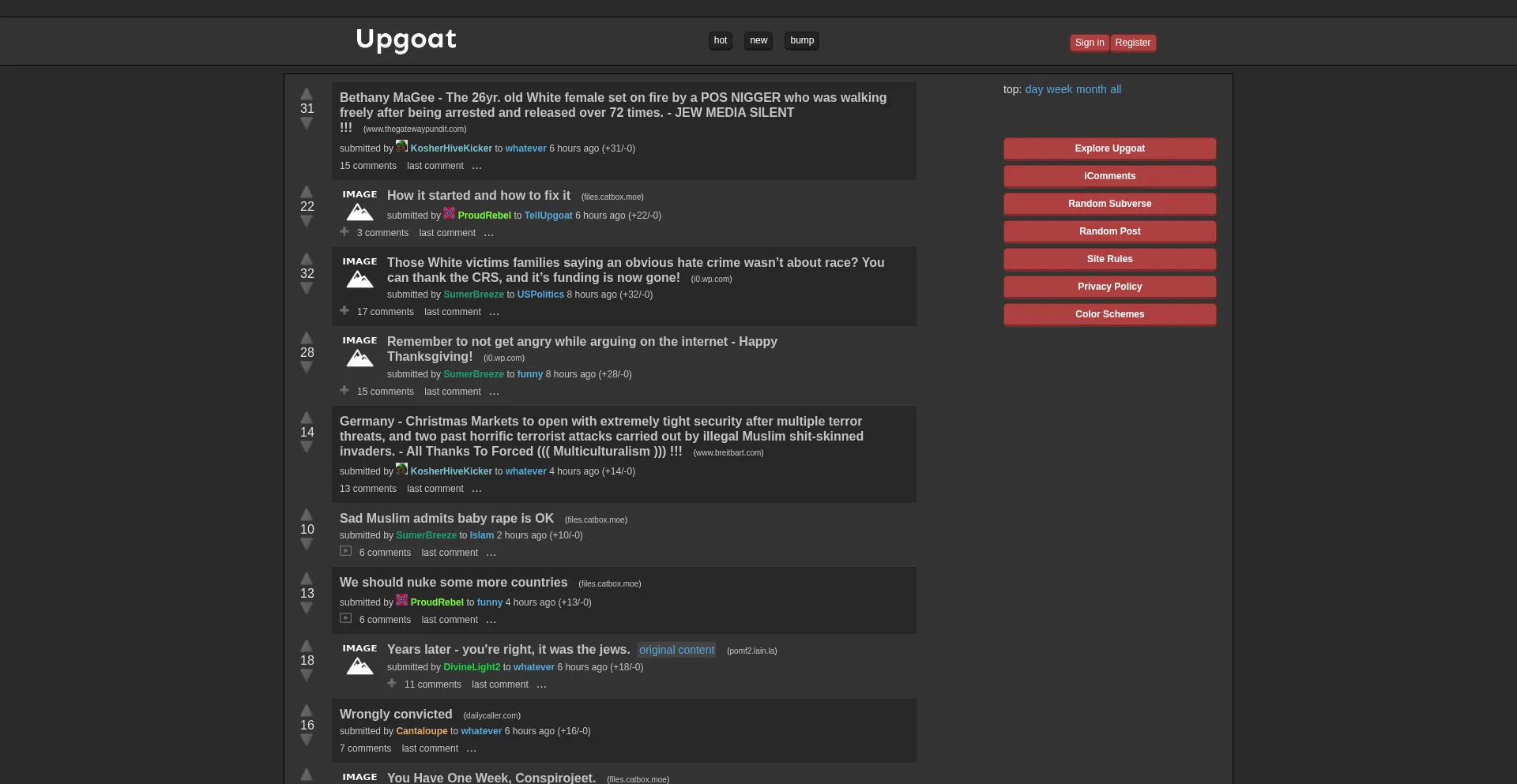 upgoat.net is a reddit alternative with news and content aggregation dedicated to being able to post what you want