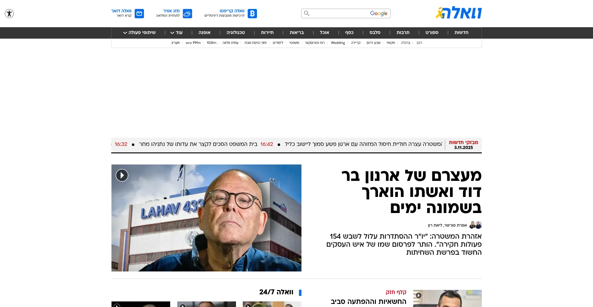 וואלה חדשות. ספורט. סלבס. אוכל - עדכונים ודיווחים שוטפים