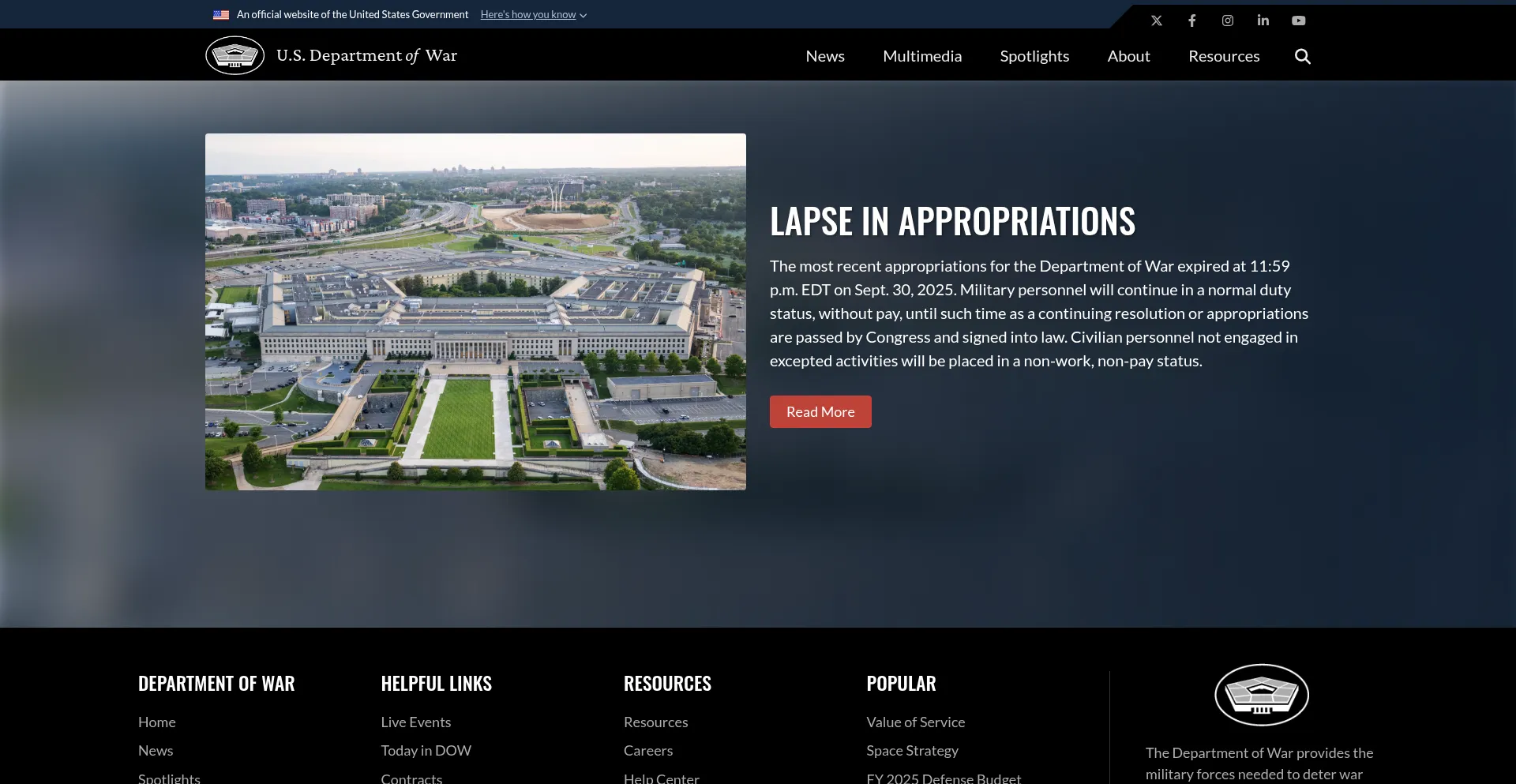 War.gov Reseña del sitio web