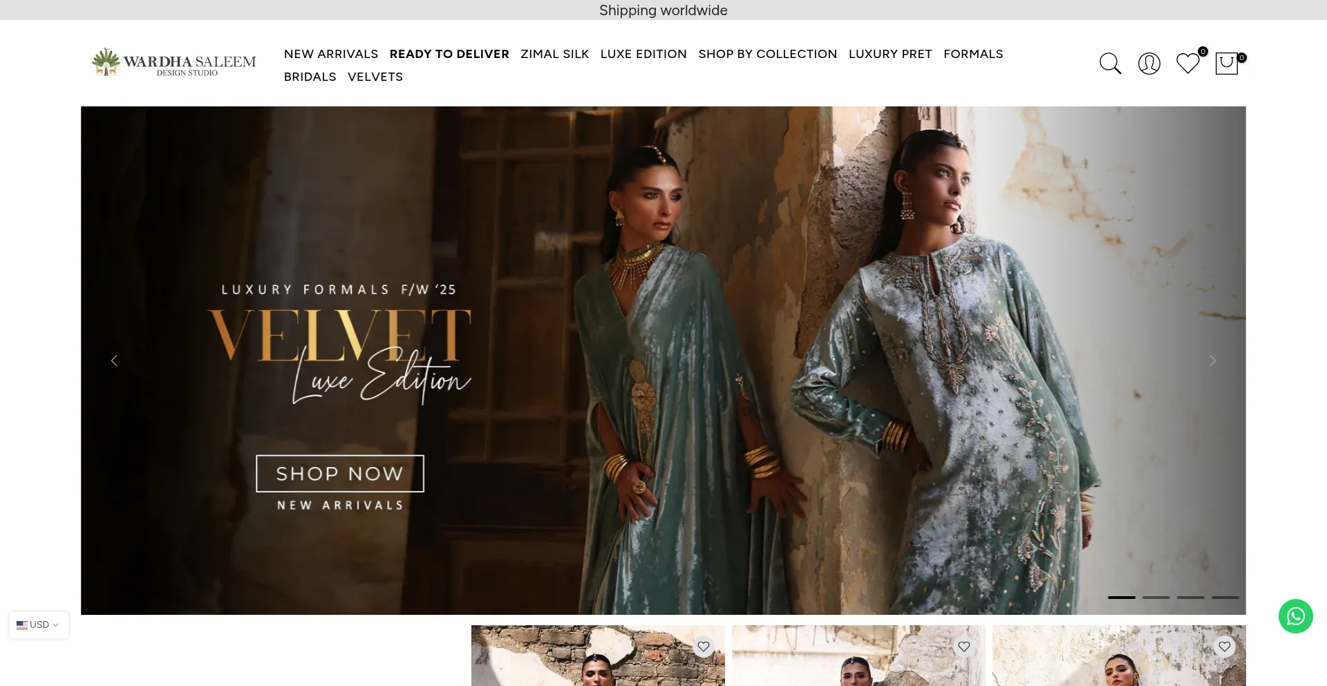 Discover Wardha Saleem's latest collection of luxury prêt, formal wear, and bridal couture, blending traditional elegance with modern designs.