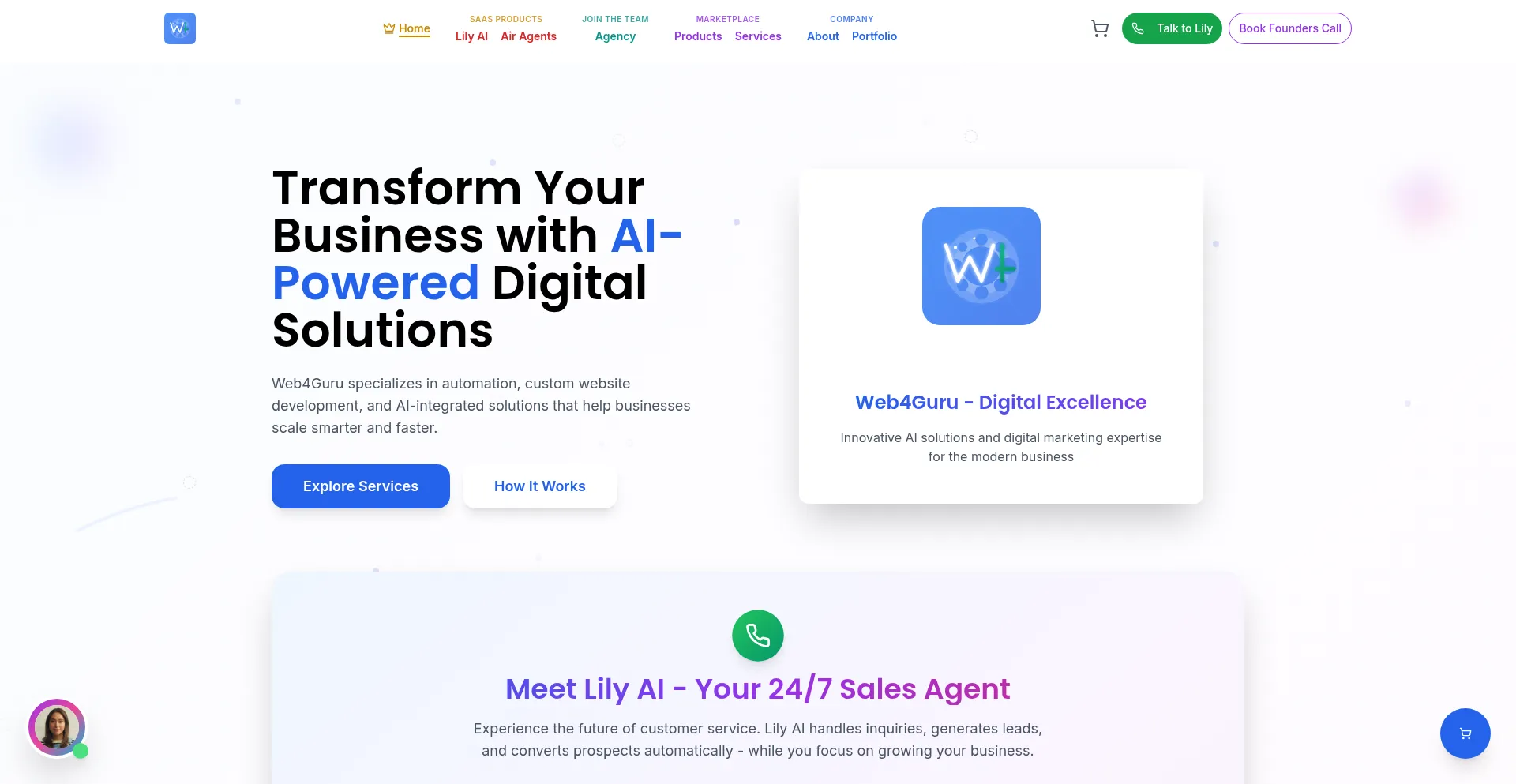 Web4Guru specializes in digital marketing, AI integration, website development, and automation solutions for small to mid-size businesses.