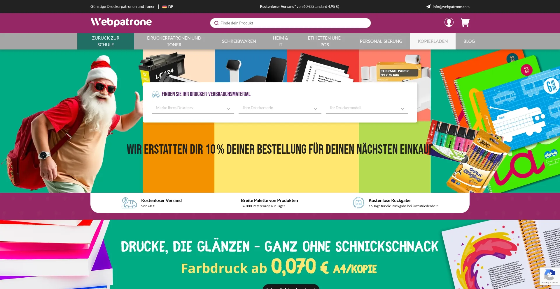 Kaufen Sie die besten Tintenpatronen und Toner auf dem Markt, sowie Schreibwaren und Produkte für den professionellen Druck bei Webpatrone.