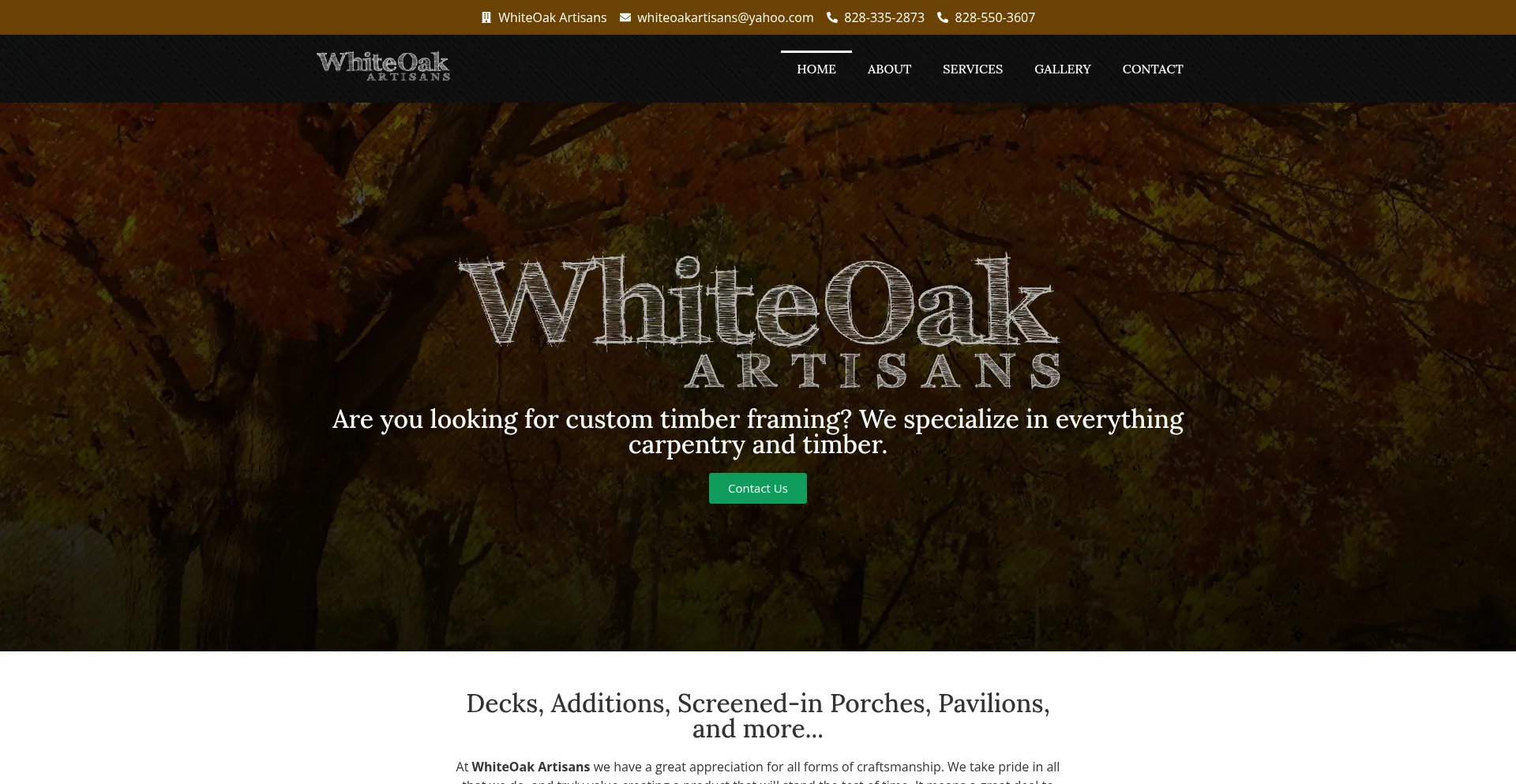 Specialty timber framing including decks, high end trim carpentry, screened in porches, pavilions and more.