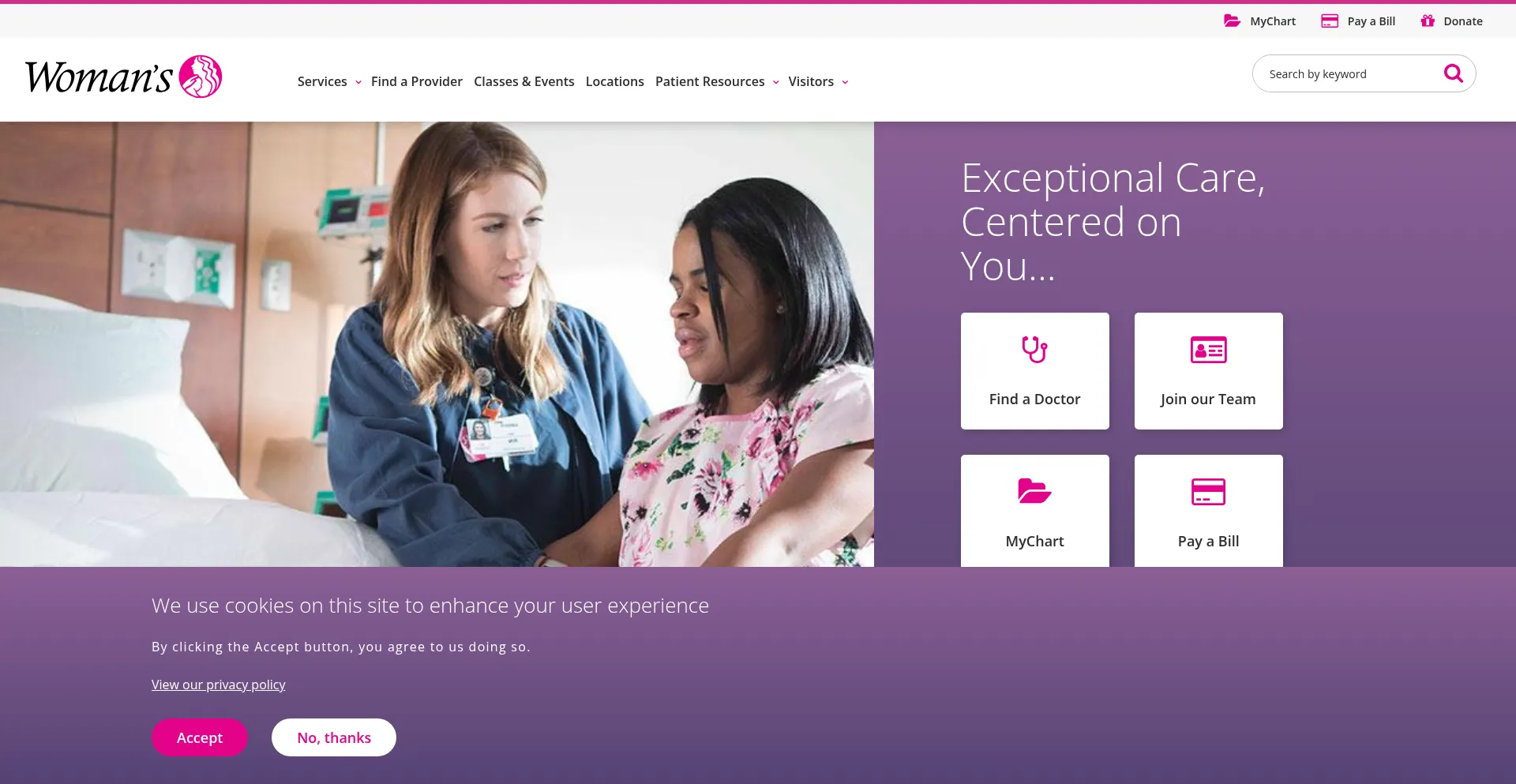 From birth to mammography, from cancer care to surgery, Woman's wants to be your resource for exceptional care.
