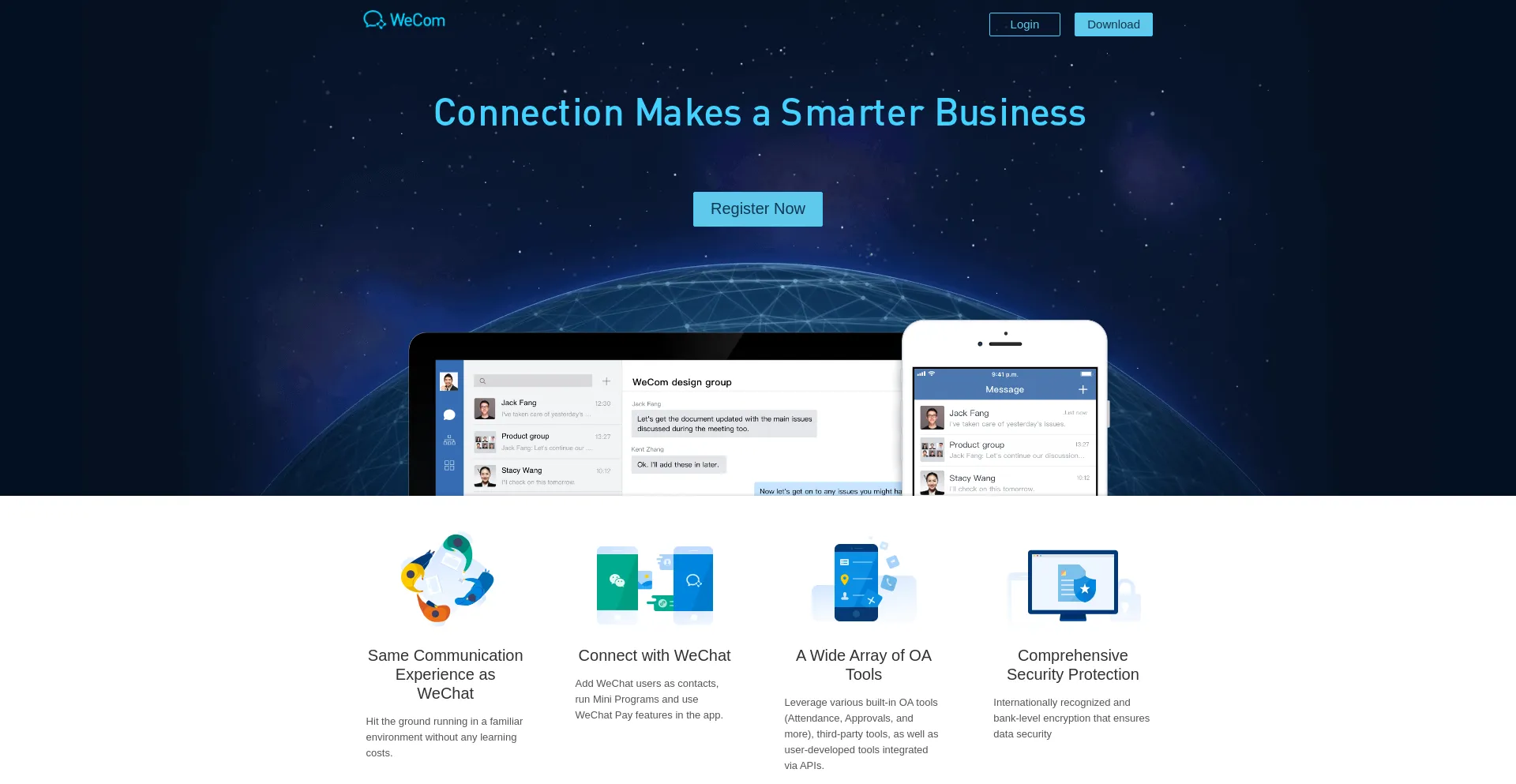 WeCom is a professional office management tool created by Tencent WeChat team for companies. Connected with WeChat messages, mini programs and WeChat Pay, it has a powerful mess...