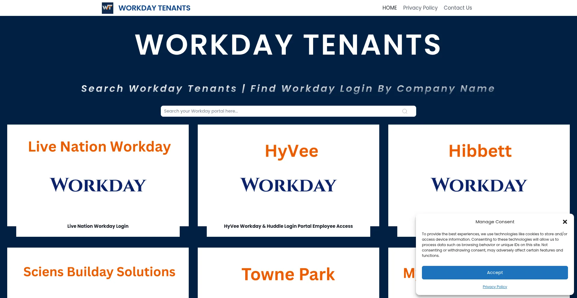 Easily find your company’s official Workday login page with Workday Tenants. Search by company name to access the correct Workday tenant and sign in securely.