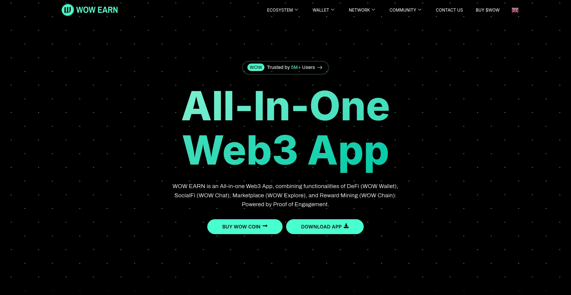 Discover WOW EARN, the all-in-one Web3 app with crypto mining, multi-chain wallet, staking NFTs, and marketplace dApps. Join the global Web3 community today.
