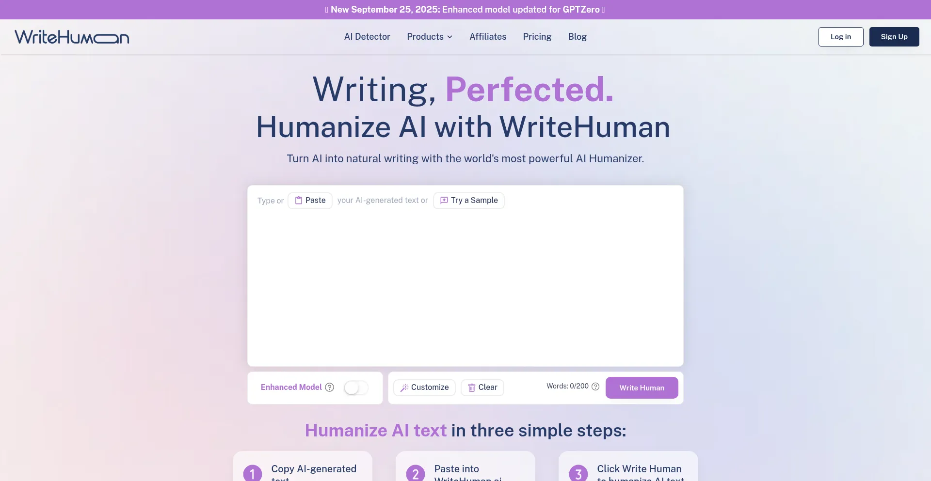 Use WriteHuman’s AI humanizer and AI detector with Copyleaks, ZeroGPT, and GPTZero. Transform AI text into human-quality content in seconds. Try free!
