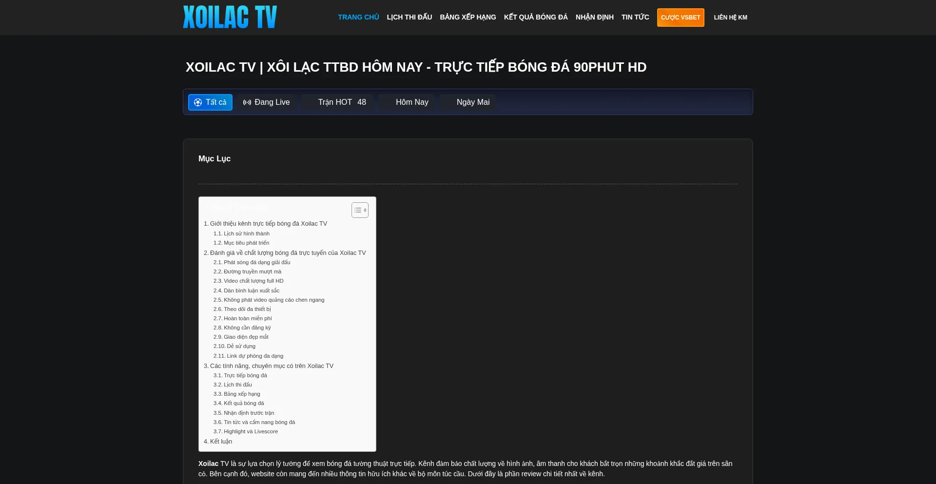 Xoilacvsa.tv Reseña del sitio web