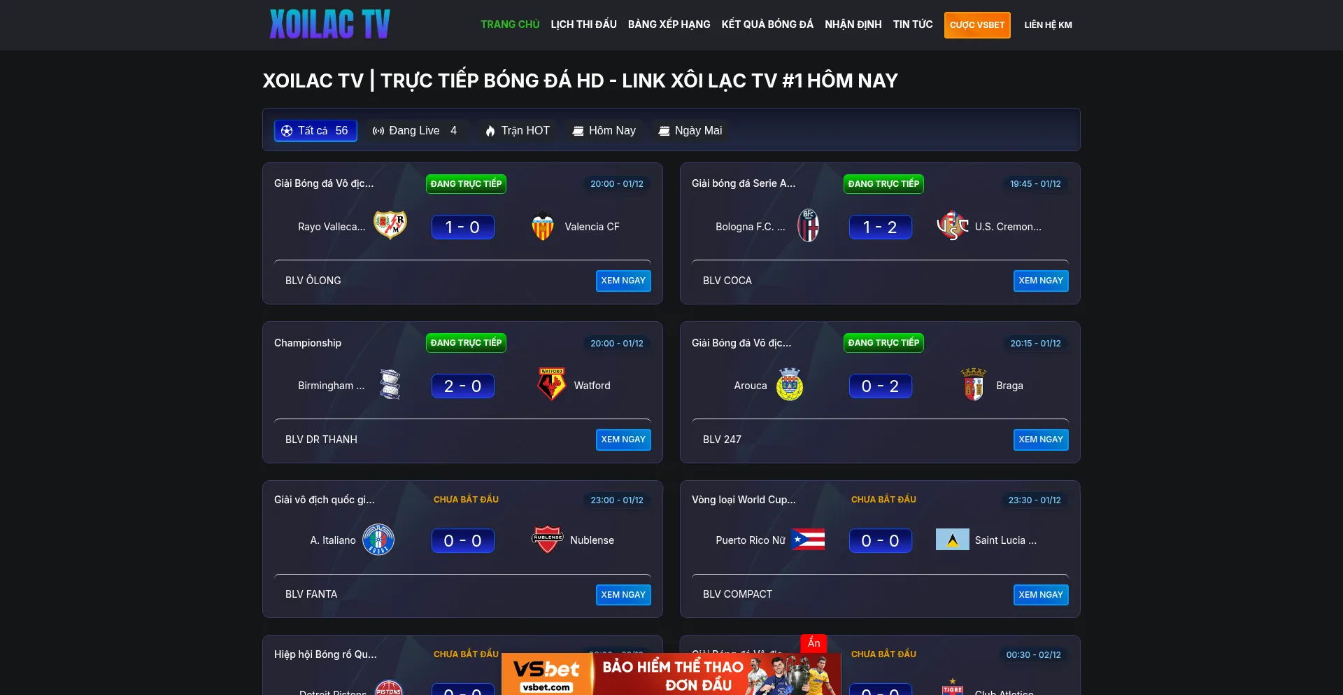 Xoilac TV trực tiếp bóng đá HD hàng đầu Việt Nam, đường truyền ổn định, đa dạng link trực tuyến, đa dạng giải đấu, BLV chuyên môn cao v�...