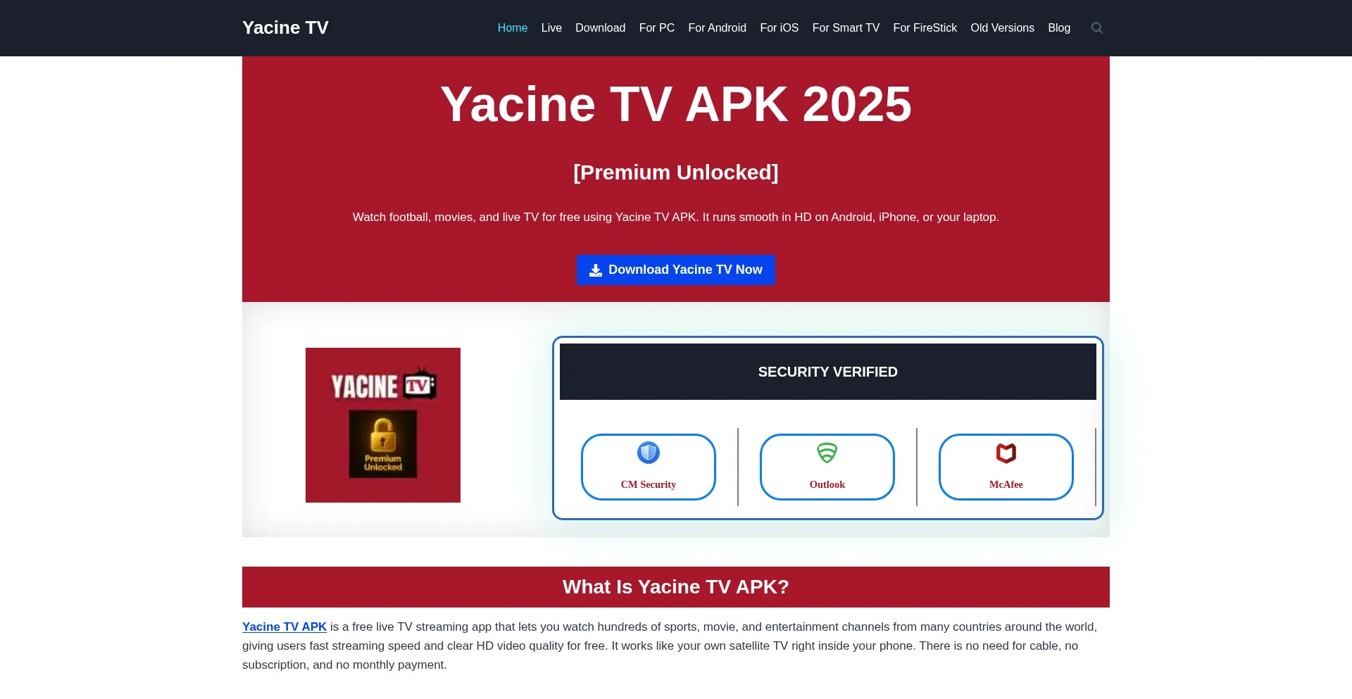 Download the Yacine TV APK Latest Version and enjoy Football, Movies, and Shows 100% Free, Premium Unlocked, No Ads and No Signup required.