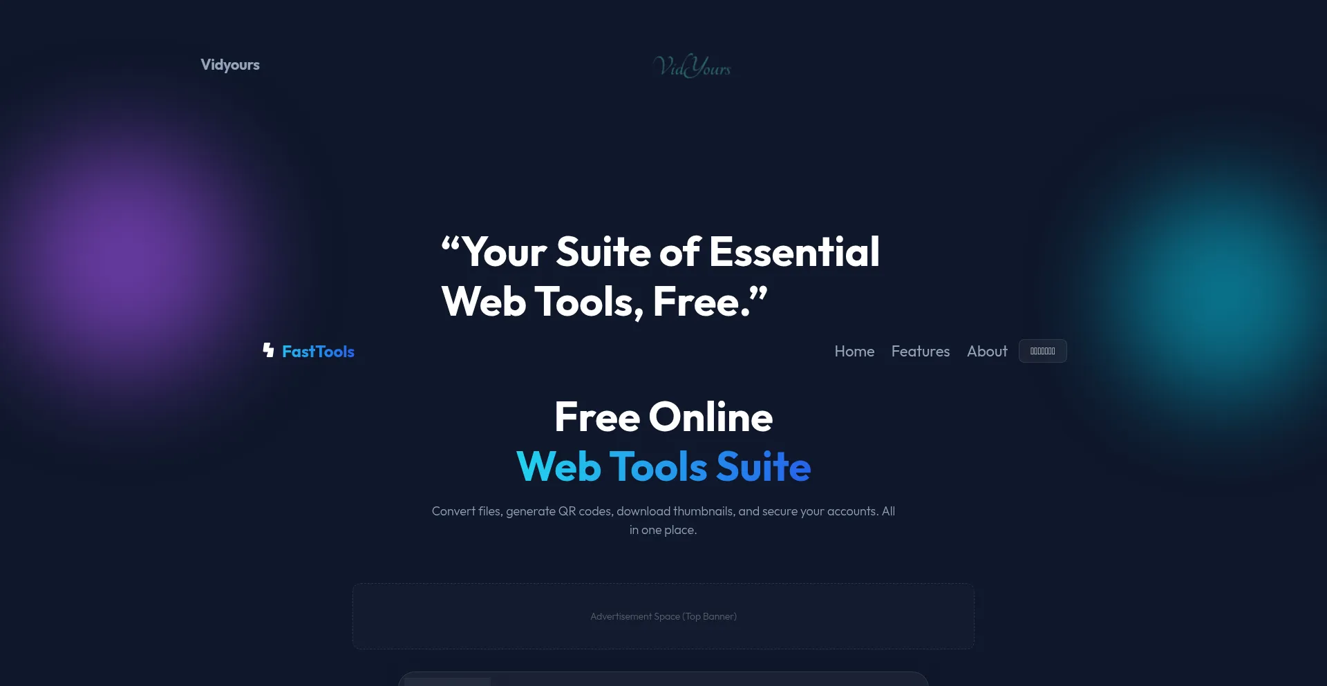 Universal Media Converter & Tools Suite FastTools Home Features About العربية Free Online Web Tools Suite Convert files, generate QR codes, download thumbnails, and secur...