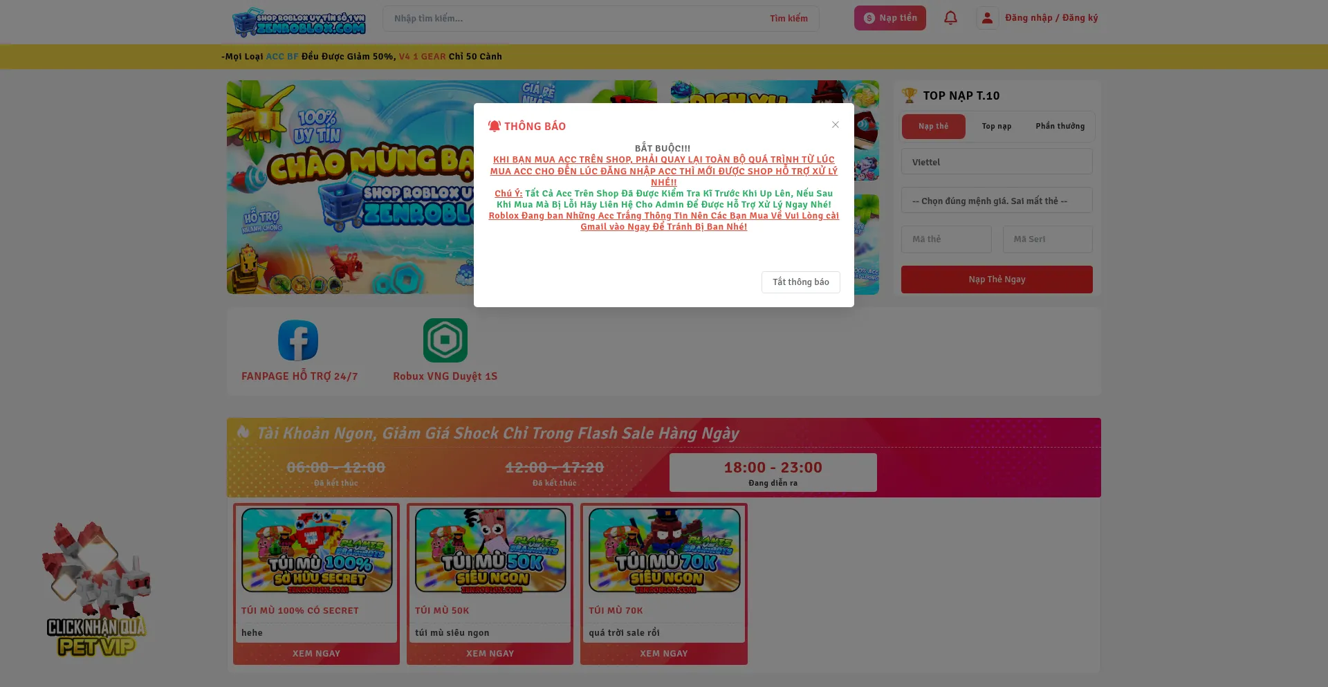 Shop mua bán acc, cày thuê, game pass, các dịch vụ roblox chất lượng và uy tín tại Việt Nam. Được các Youtuber PR...