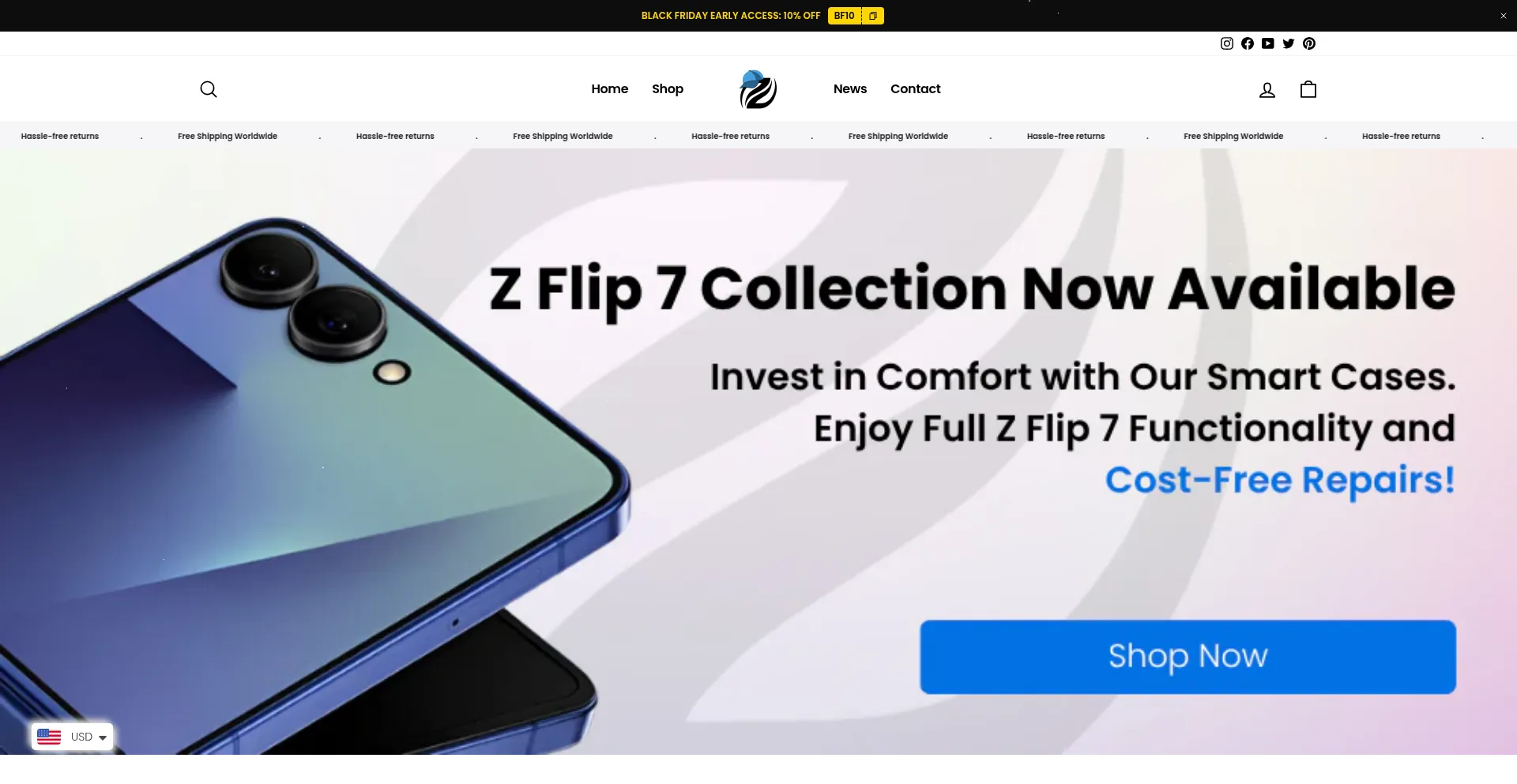 La presencia de enlaces de redes sociales en el sitio web indica que zflip-case.com mantiene cuentas oficiales en redes sociales, lo que es un indicador positivo de credibilidad y compromiso.