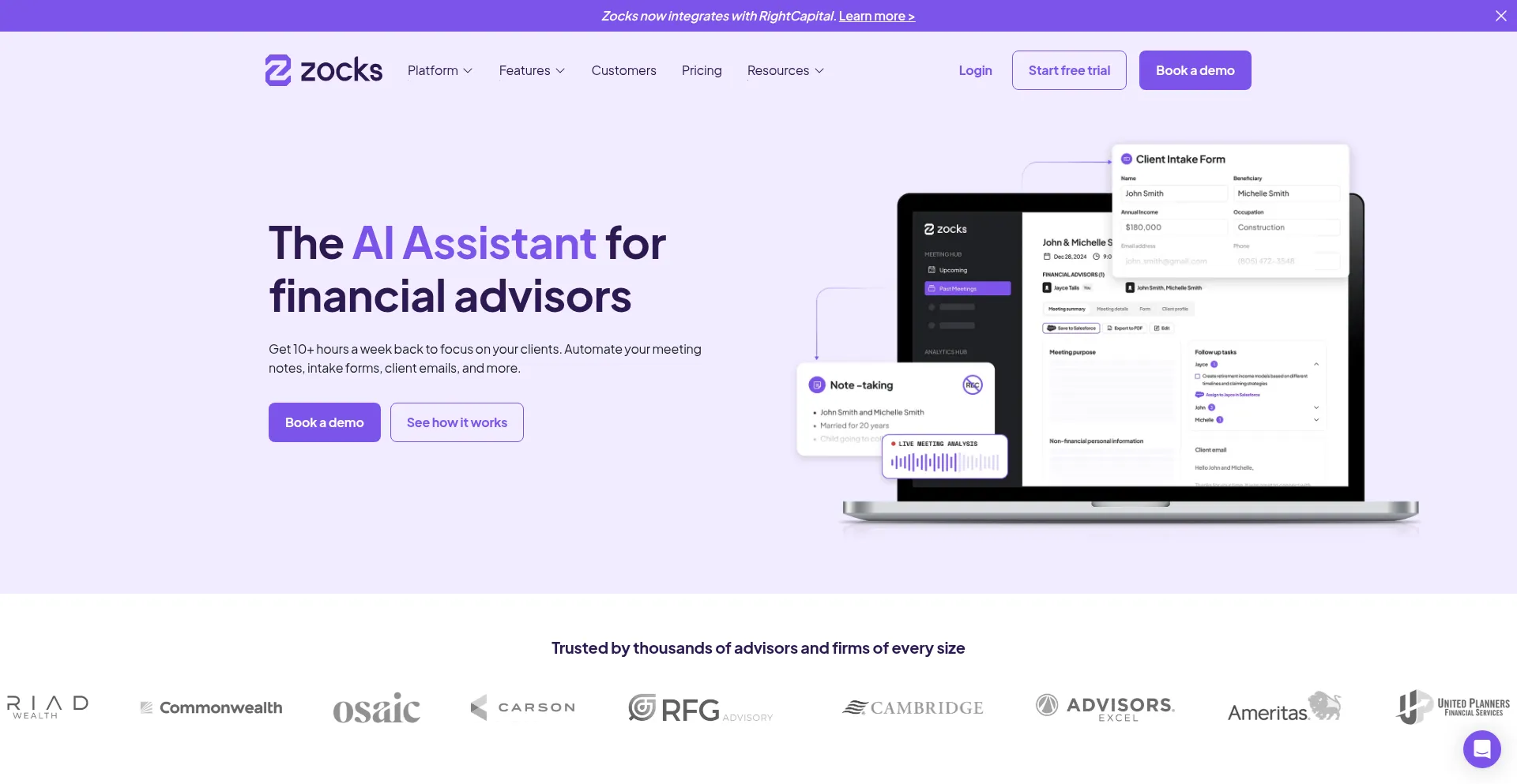 Save 10+ hours a week with AI. Thousands of financial advisors & wealth managers use Zocks to automate note-taking, client emails, intake forms & more.