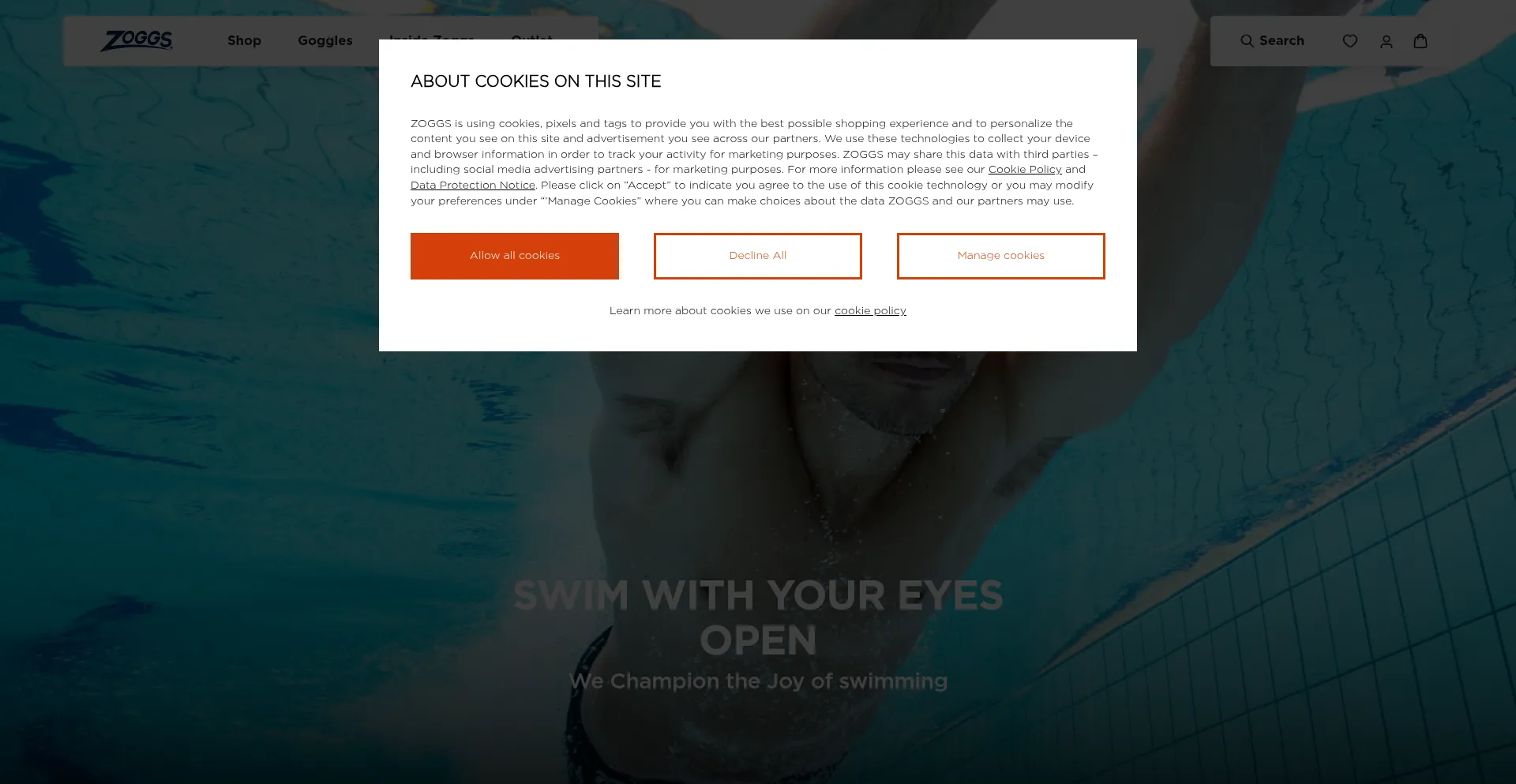 El sitio web implementa mecanismos de consentimiento de cookies en cumplimiento con regulaciones de privacidad como GDPR o CCPA. Esto demuestra que zoggs.com adhiere a estándares de protección de datos y proporciona a los usuarios control sobre prácticas de recolección de datos personales.
